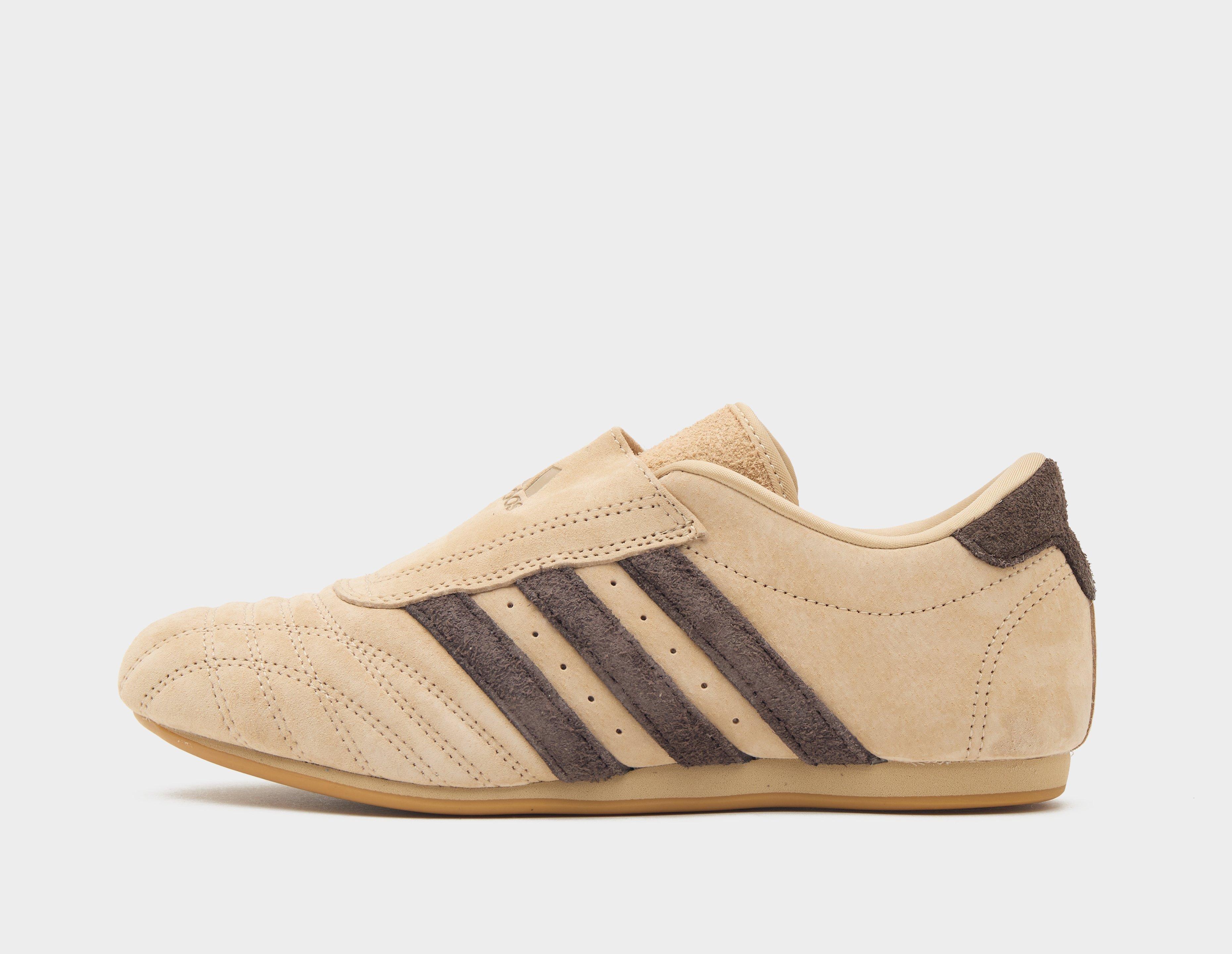 Originally released in the early 2000s for martial arts, the adidas Taekwondo continues on the slim, low-profile trend with the brand's most streamlined archival design yet. Arriving in premium 'Magic Beige' suede, the unique forefoot stitching and lace cover are nostalgia-inducing, while contrasting brown hairy suede 3-Stripes keep it familiar. Underfoot, the rubber outsole offers flexible traction. | JQ3606