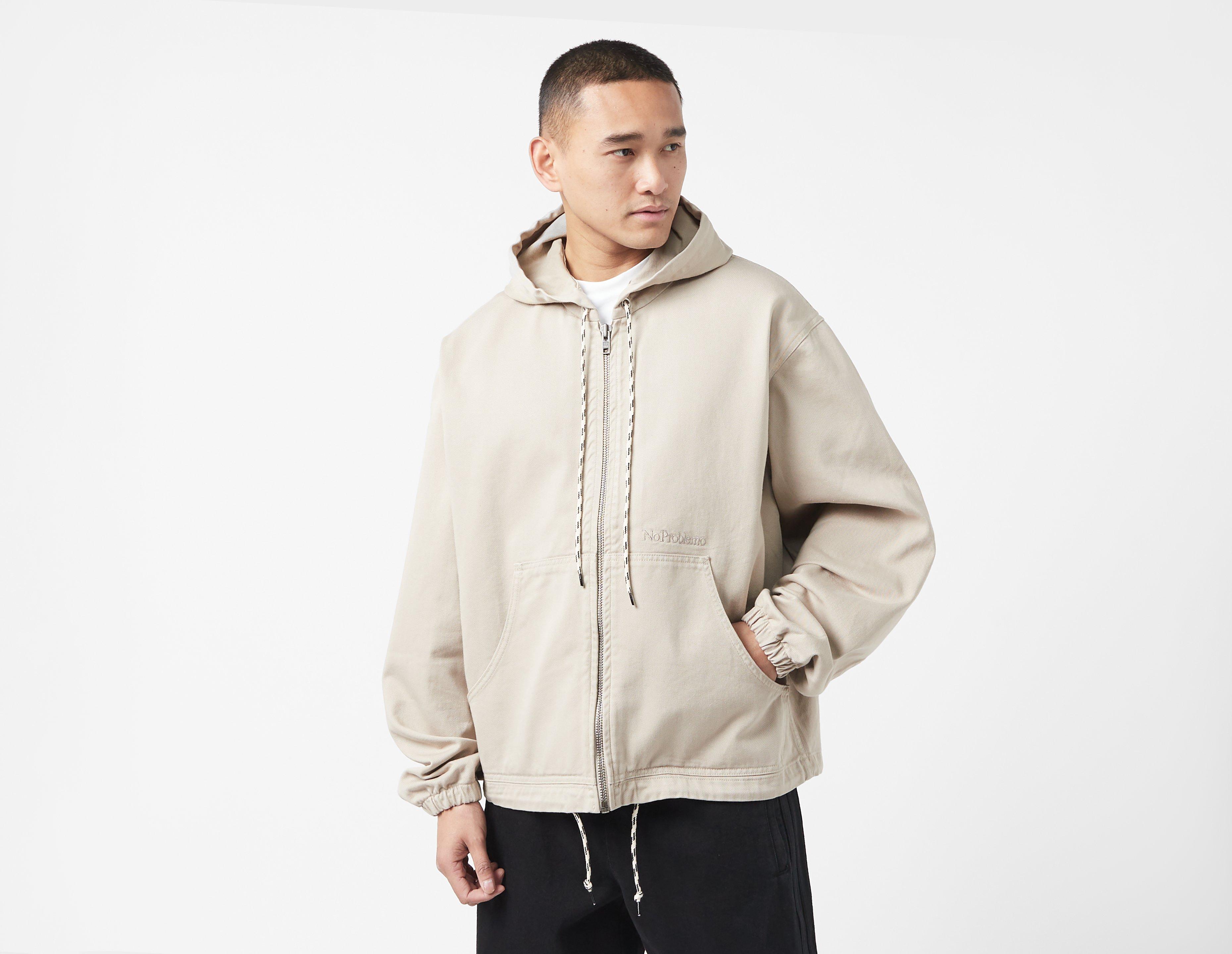 No Problemo specialises in quality genderless apparel, including this cotton Workwear Jacket in biege. Finished with bungee rope-style drawcords at the hood and hem, embroidered branding at the pockets completes the design. | our model is 6'0" and wears a size medium
