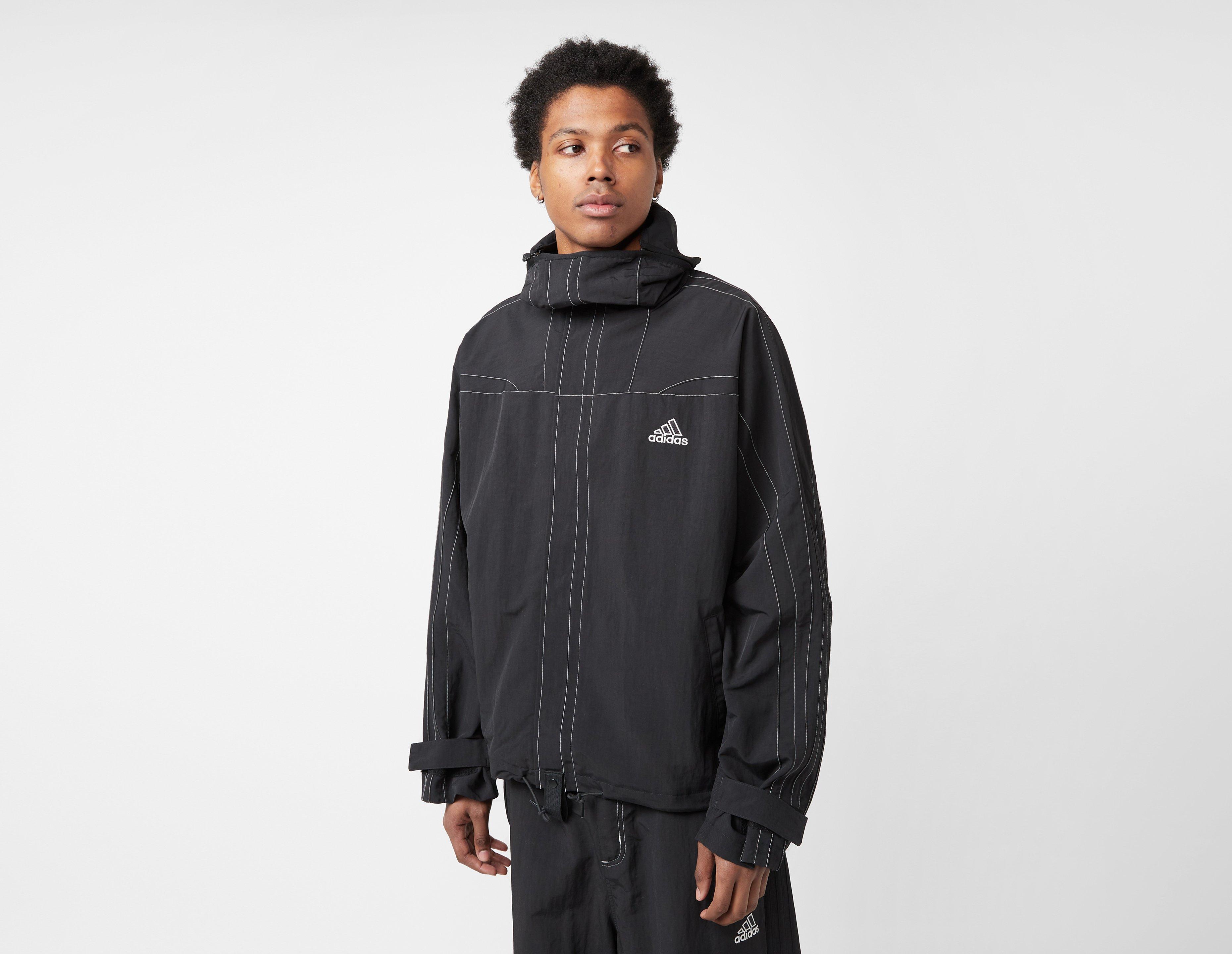 One for layering; this Cut Line Jacket supplies a perfect blend of street style and practicality. Crafted with premium nylon in a loose silhouette with a full zip, pockets offer plenty of storage, and an adjustable hood delivers coverage. Rooted in sport, adidas branding and contrast stitching add the final flourish.| JD5419 | our model is 6'2" and wears a size medium