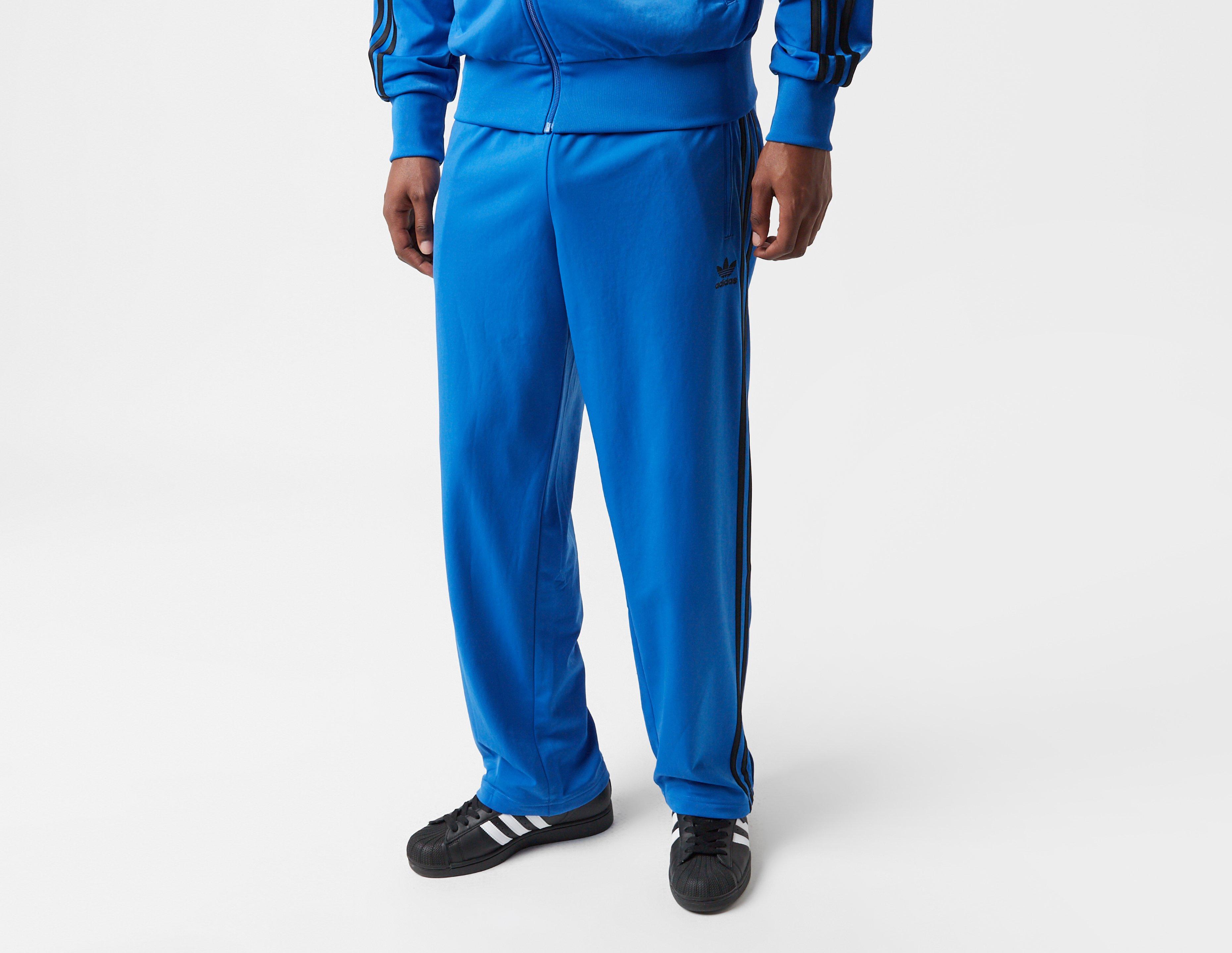 First seen in the 1980s, the adidas Originals Firebird Track Pants get a new look from Adicolor thanks to a fresh cut and contemporary palette, designed with sustainability at the forefront. Arriving in blue, adidas heritage runs right through the veins with black 3-Stripes down the legs and a Trefoil logo at the front pocket. | JY1351 | our model is 6'2" and wears a size medium