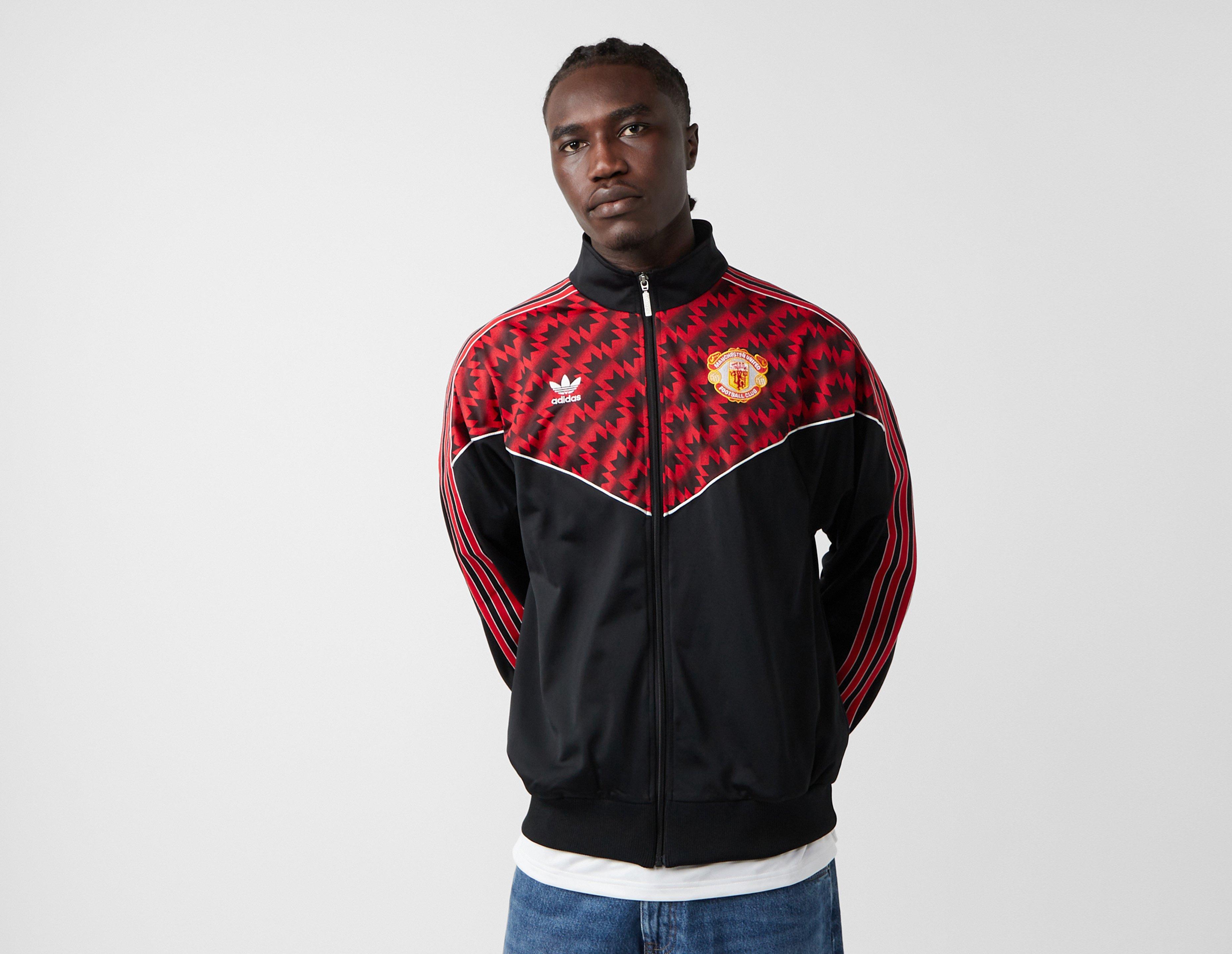Packed with '90s football nostalgia, the Manchester United FC '91 Track Top is inspired by jackets worn in the European Cup final. Cut from smooth polyester, with ribbed cuffs and a stand-up collar for structure, it features 3-Stripes running down the sleeves. The United club crest gets joined by the renowned Trefoil to finish. | JF0373 | our model is 6'2" and wears a size medium
