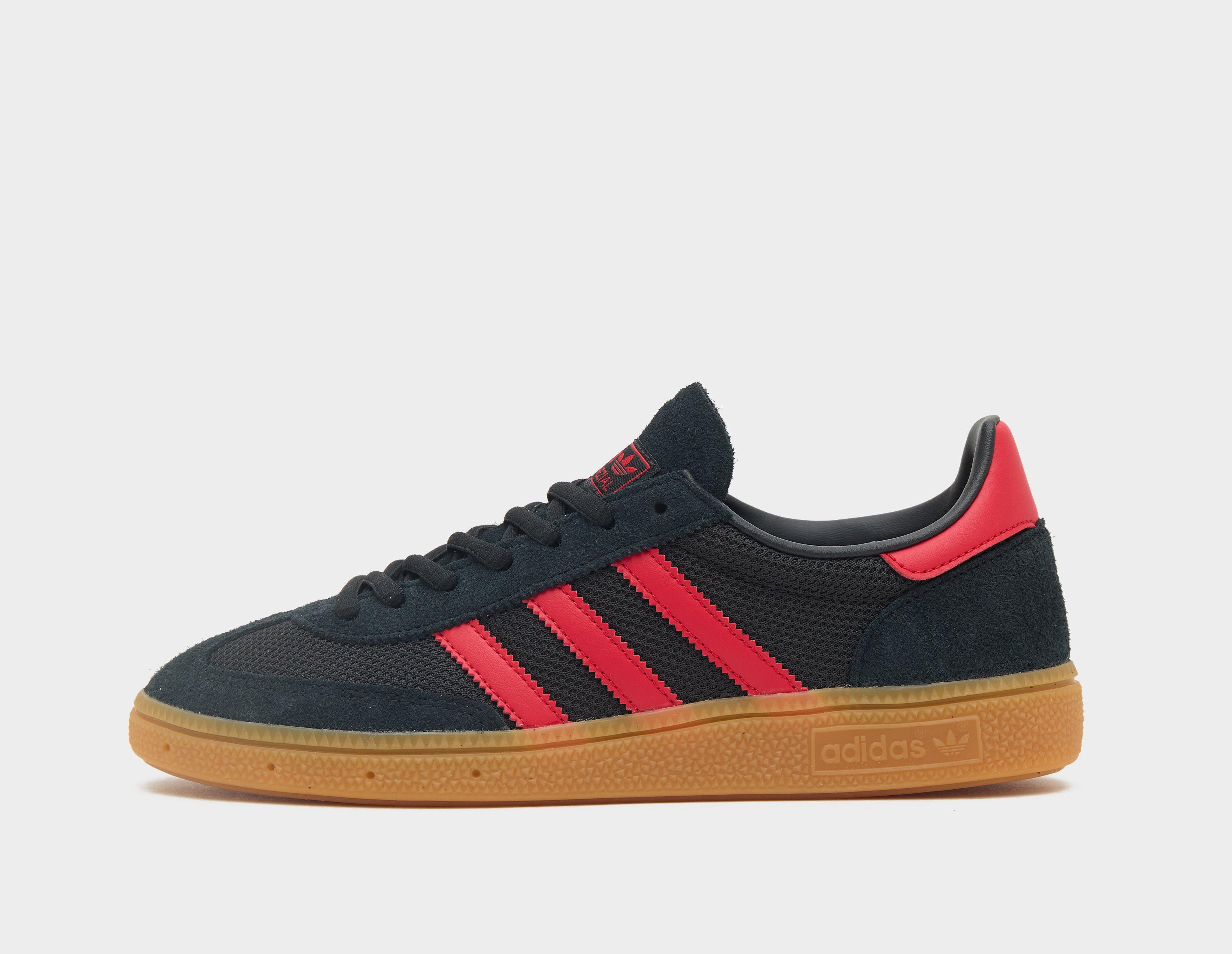Released in the '70s as a specialist handball shoe, the Handball Spezial has since become a mainstay in casual wardrobes everywhere. Durable black textile creates the base of the upper, while premium tonal suede overlays add reinforcement on the T-toe and heels. Leather 3-Stripes and heel tab offer a hit of colour to the design, while the rubber sole unit keeps things traditional below. | JH5446