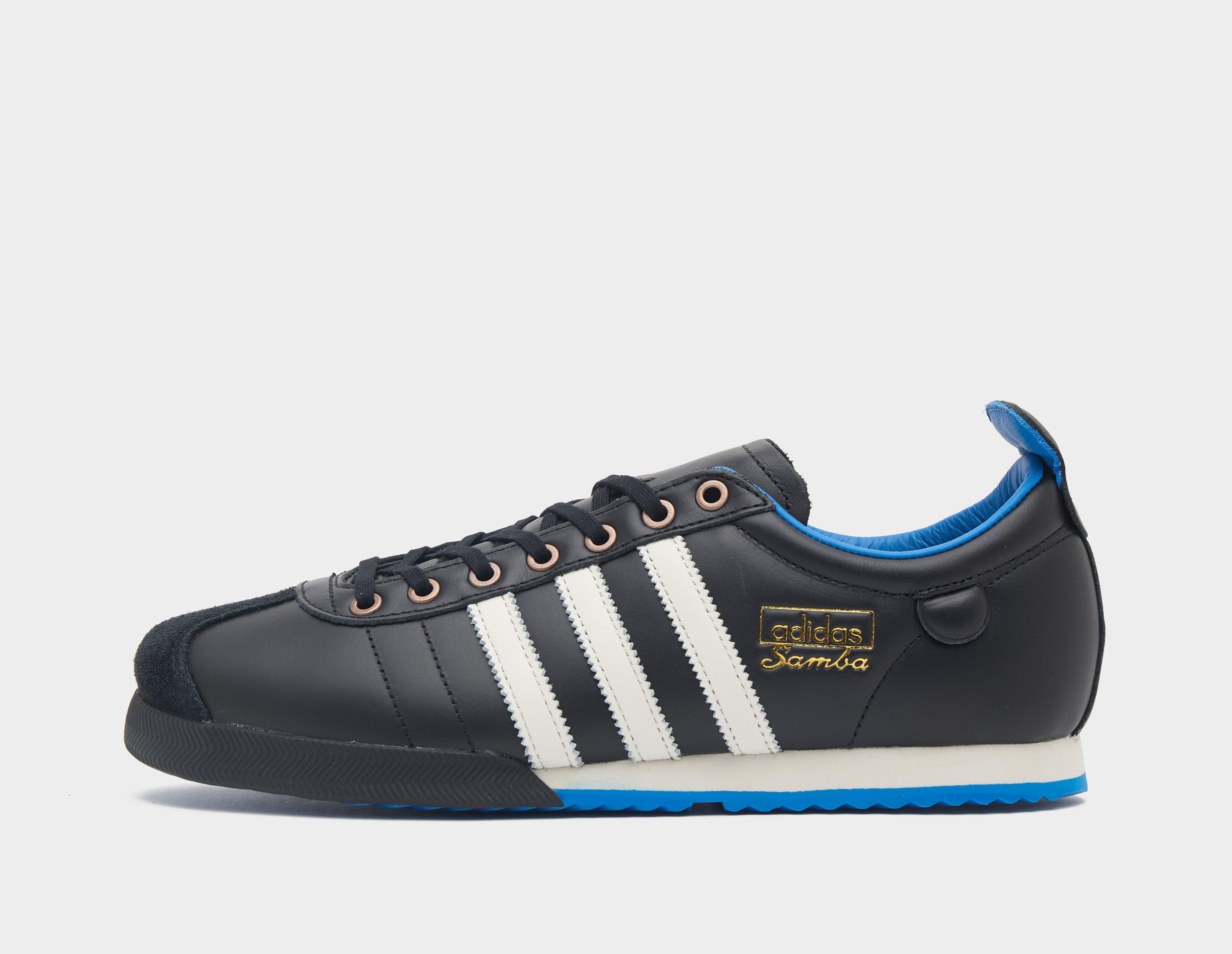 The adidas Originals Samba 62 is a reshaped tribute to the early versions of the famed football lineage. A premium, sleek 'Core Black' leather upper is furnished with tonal suede T-toe tooling, while 'Cloud White' 3-Stripes illuminate the sidewalls and calligraphic gold foil branding adorns the rear laterals. Underfoot, outsole cut-outs as well as herringbone treading both aid with grip on icy surfaces; just like they did back in the day. | IH8603