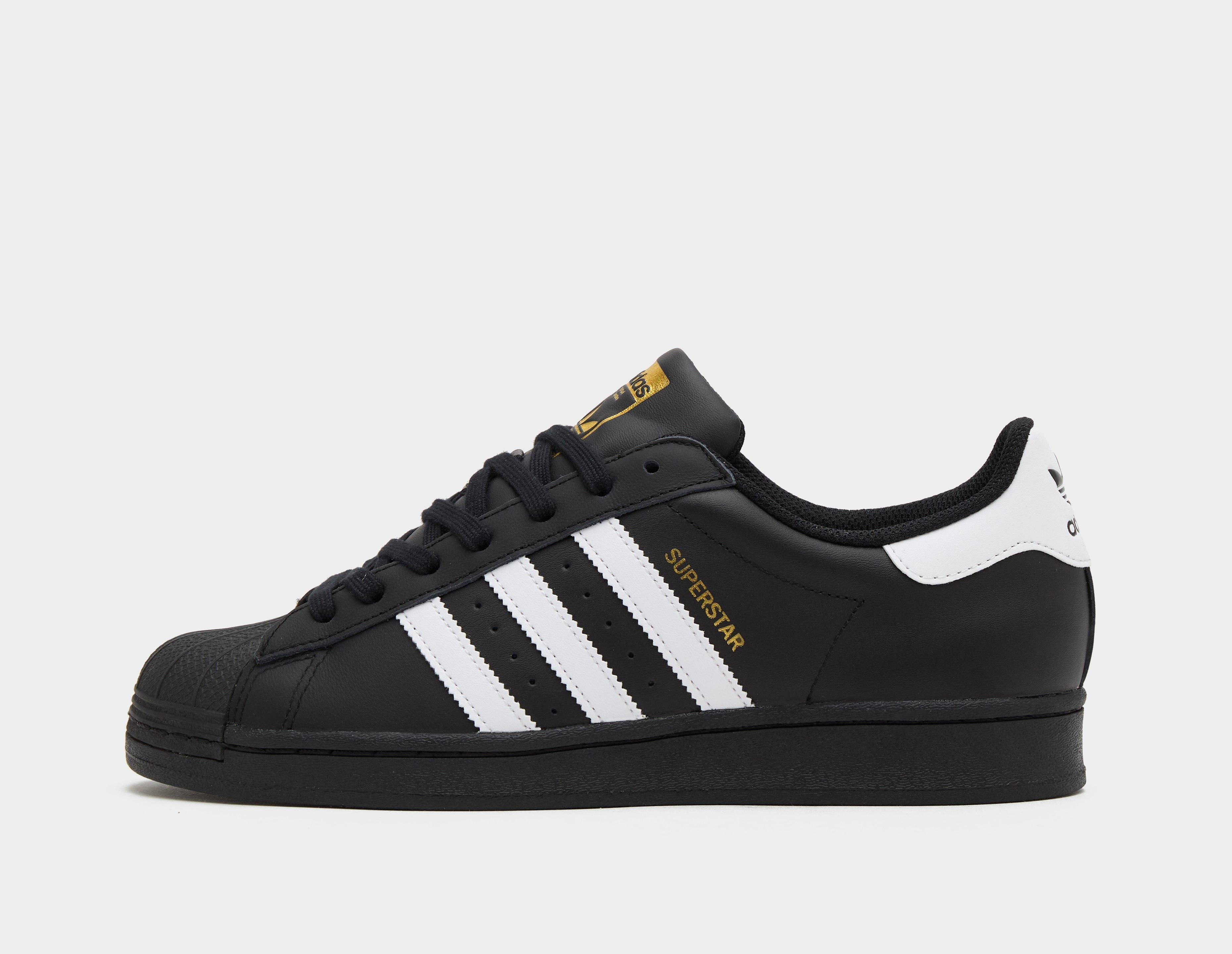 An all-time great, the Superstar began its life as a basketball shoe back in 1970 and in its following years found itself on the feet of NBA greats Kareem Abdul Jabbar & Jerry West. Players were beginning to opt for leather shoes over canvas due to the increased support and protection they provided, and the Superstar built on this notion with the introduction of its iconic rubber 'shell-toe'. Later in life, the Superstar resonated with the hip-hop community, donned by the likes of RUN-DMC and The Beastie Boys. Turning 50 this year, this edition of the Superstar returns in an all-black colourway which coats the pair's leather uppers. Classic 3-Stripes adorn the sidewall and an adidas Superstar box logo adds an OG touch to proceedings | EG4959