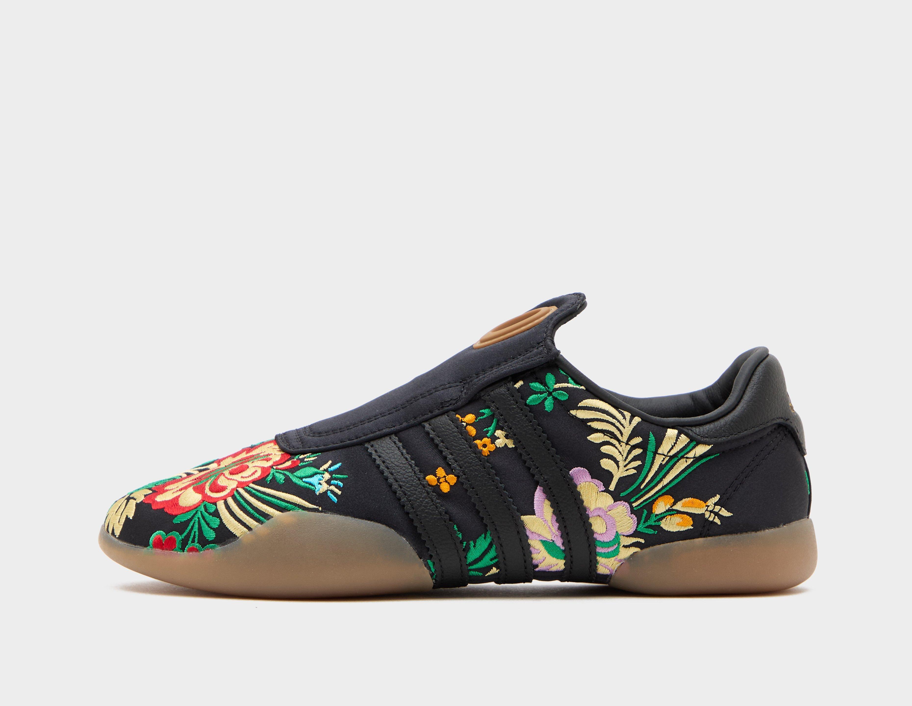 Originally a training shoe, the adidas Taekwondo Mei has cemented itself as a fashion-forward staple. The super low-profile silhouette gets retuned with a black textile upper emblazoned with floral embroidery, while black leather 3-Stripes offer an elevated finish. Anchoring the design is a sleek, segmented rubber outsole. | JR6018