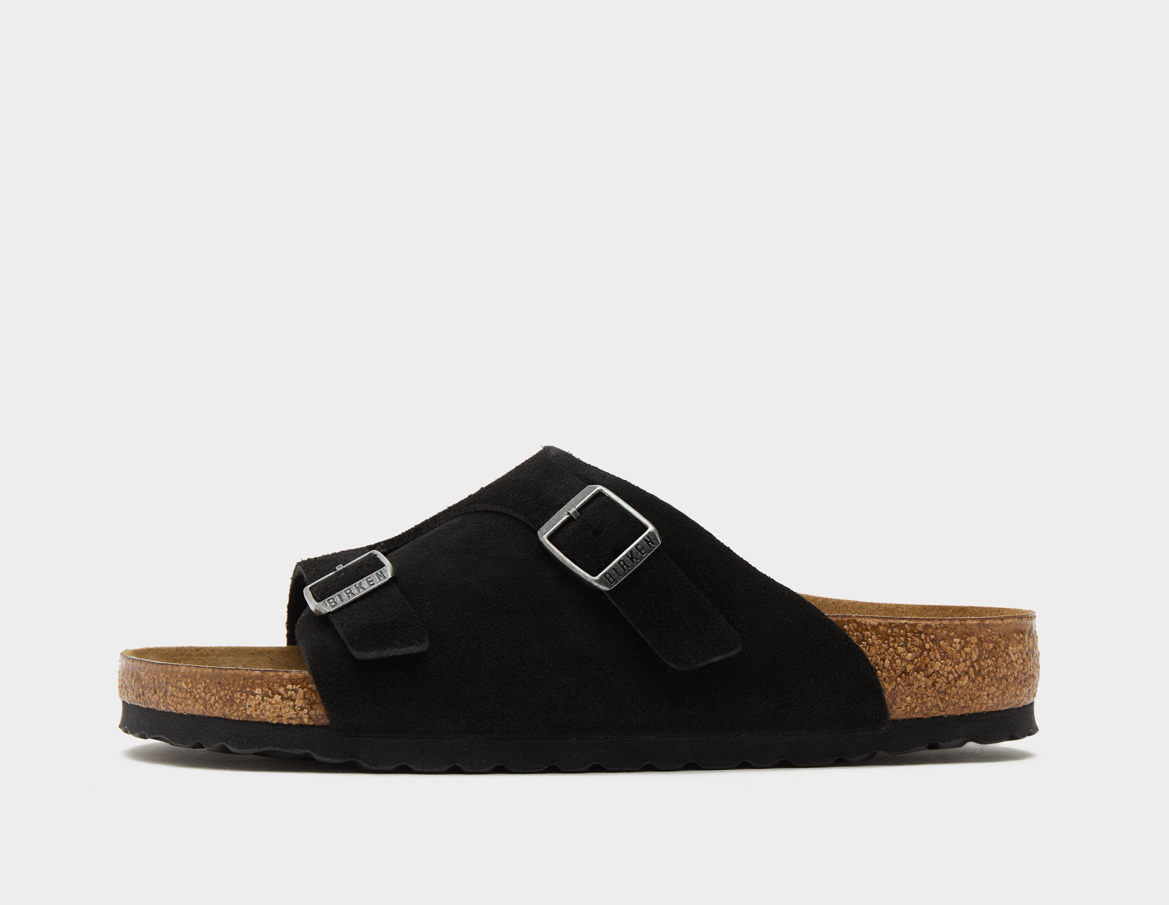 Crafted meticulously in Germany, Birkenstock's latest Zurich model goes hand-in-hand with minimalist styling. Blending the stability of a clog with the breezy sensations of a sandal, this regular fit silhouette has a luxurious black suede upper that's secured with two side buckles. Underfoot, you'll find the label's infamous anatomically shaped cork footbed for all-day comfort, whether you're going barefoot or opting for a knit sock on the colder days. | 1025045