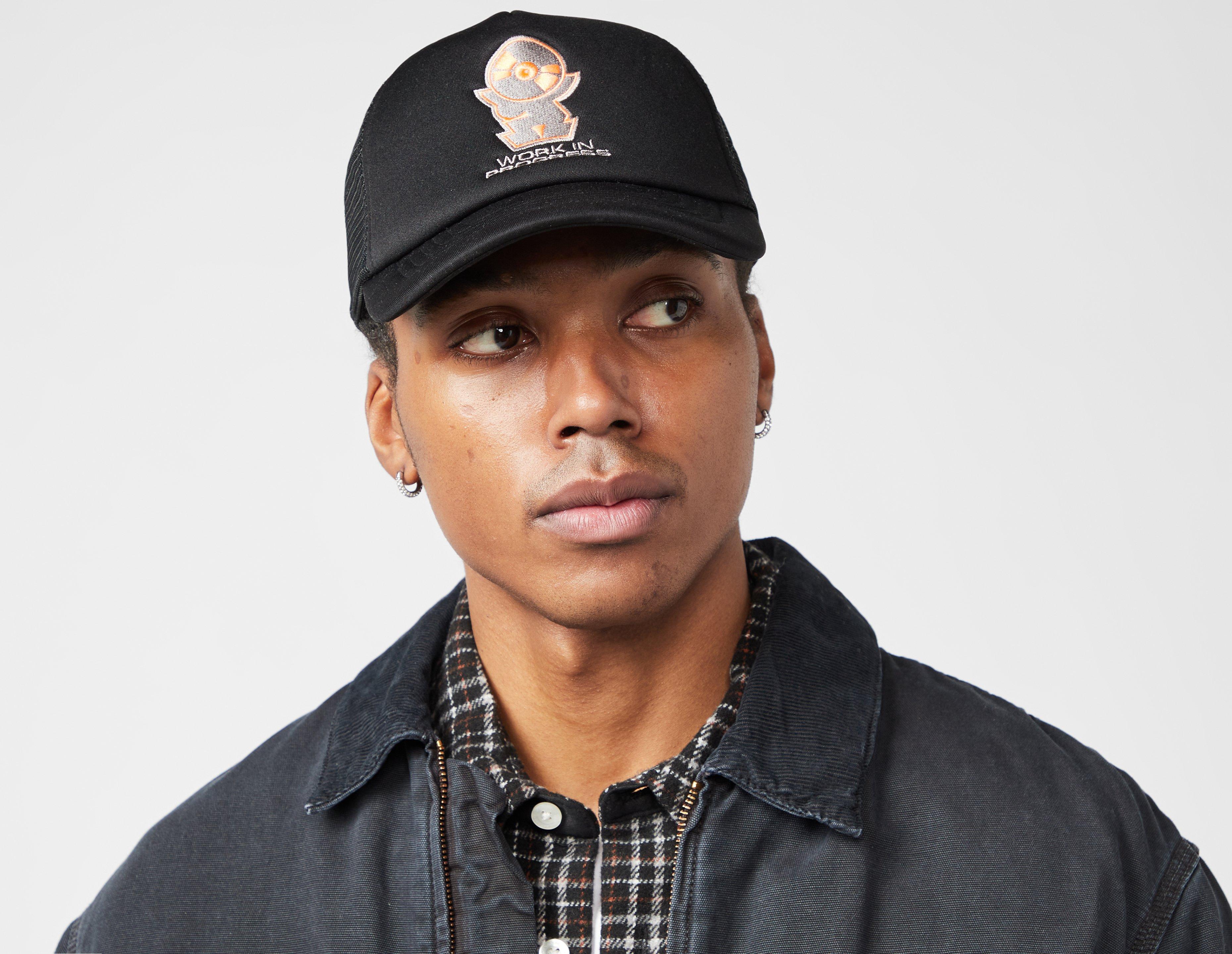 The Carhartt WIP Harttronix Trucker Cap is a classic blue collar staple that's made from net mesh and polyester foam. An adjustable backstrap provides alterability, while logo embroidery adorns the crown. | one size