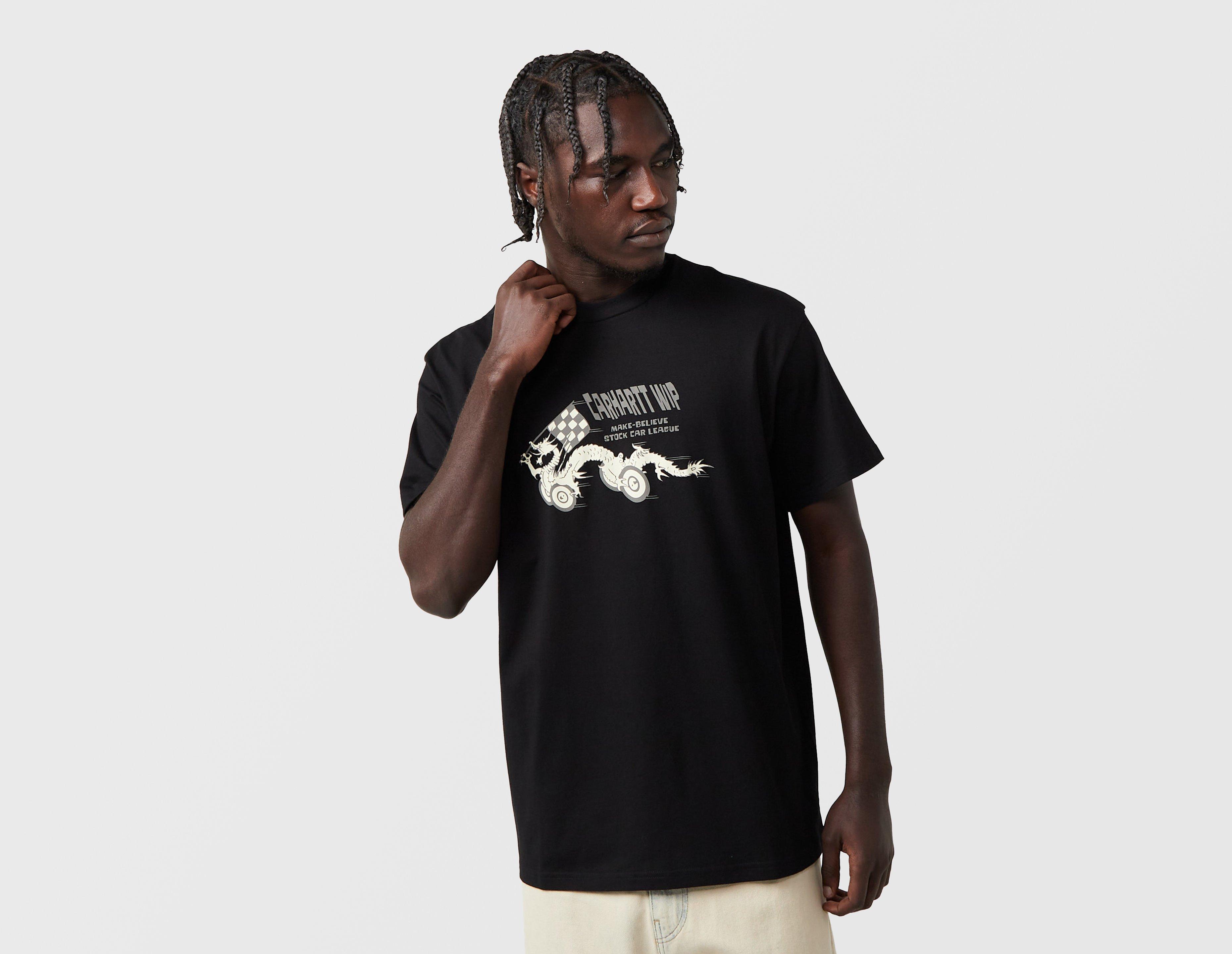 A classic set-up from Detroit natives, Carhartt WIP, the Make Believe T-Shirt in black is cut to a loose fit from midweight cotton jersey and features a graphic print on the chest. | our model is 6'2" and wears a size medium