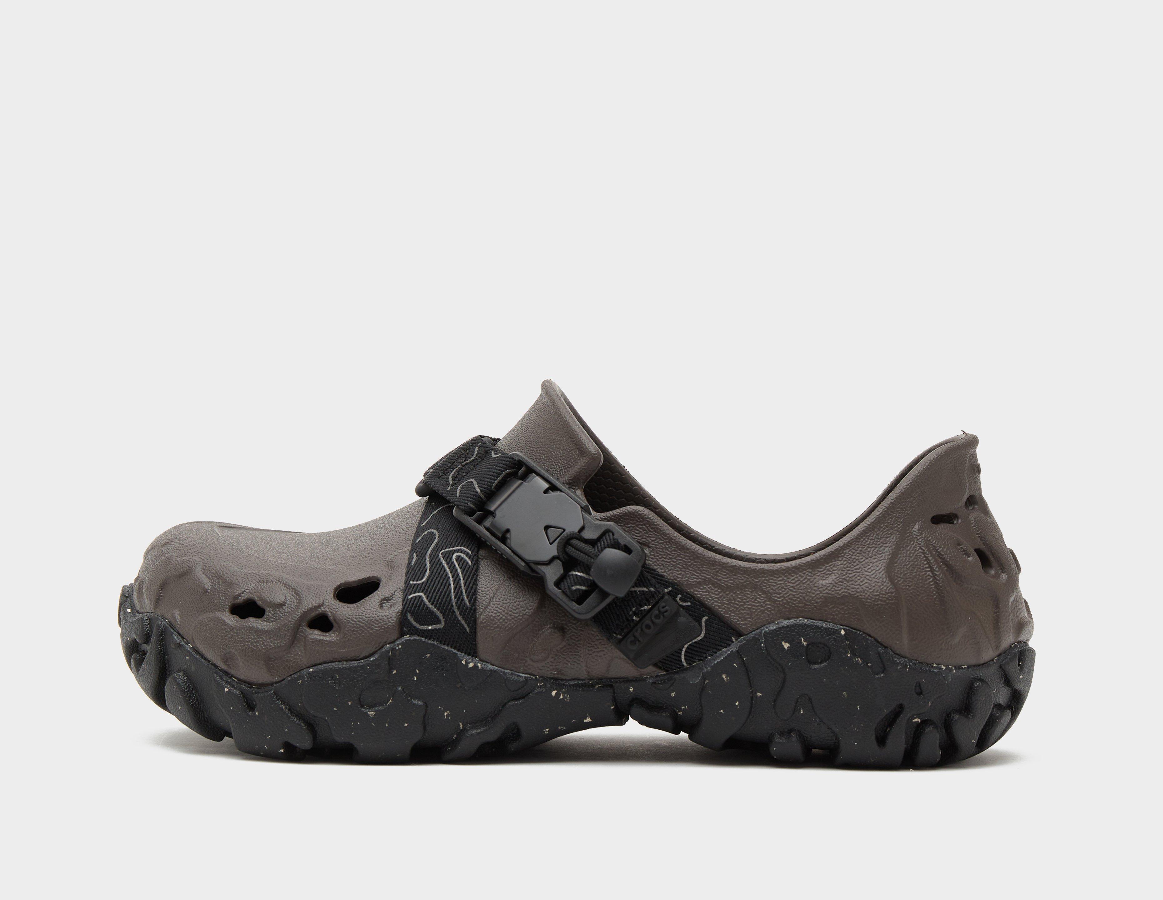 Contemporary streetwear fused with off-grid style; Crocs return with the All-Terrain Atlas model. This pair are made for challenging terrains with its bulked-up uppers and MTN outsole that's inspired by Colorado's mountains. Taking design notes from camping hardware, a nylon cross-strap with a magnetic pull release runs along the midfoot for hassle-free wearing, while sticky outsoles allow you to reach new heights. | 20817323K