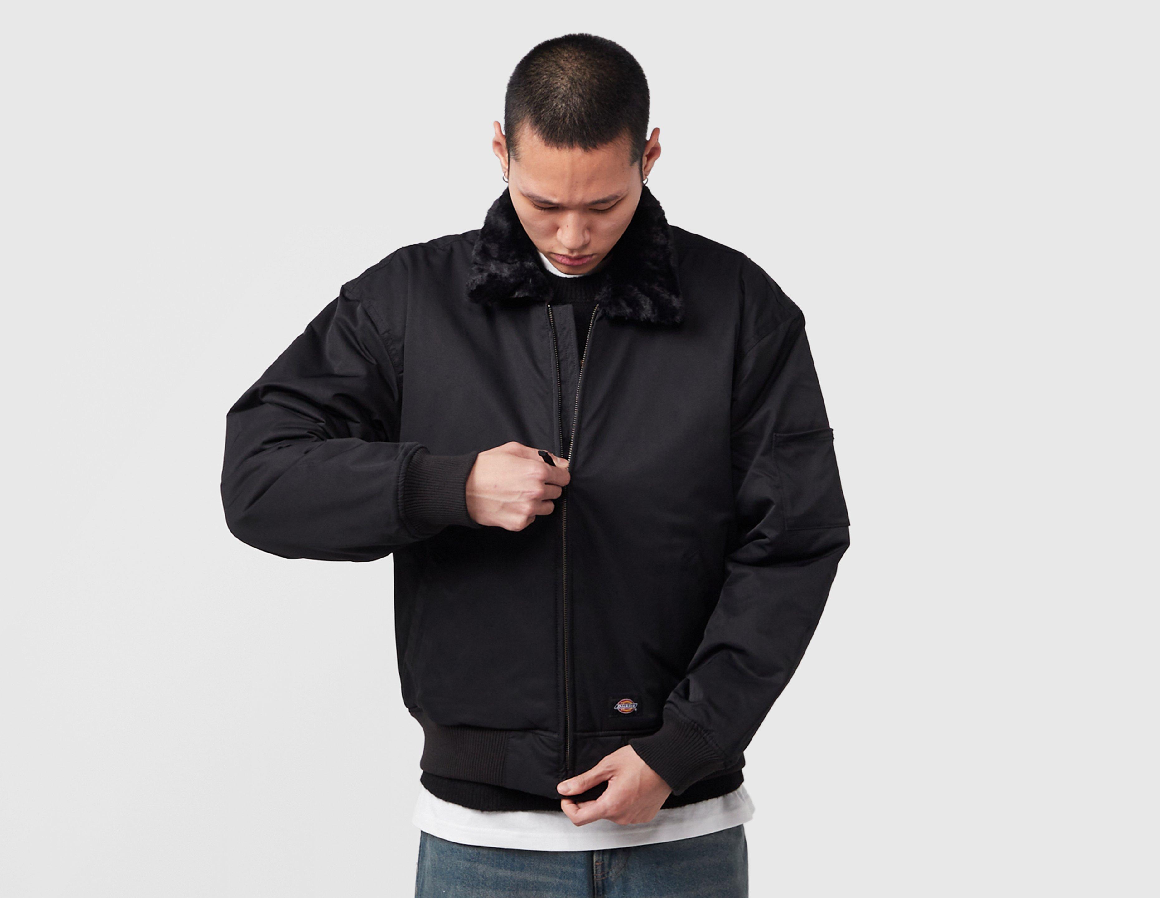 Inspired by aviator uniforms, the Dickies Coalfield Flight Jacket is a robust essential for your AW25 essentials that's cut from polyester twill to a boxy fit with stretchy rib trims. A faux fur collar lines the neck, while patch arm and internal pockets provide options for storage and quilt satin lining offers up a plush feel. Woven label adorns the front signalling Texan heritage. | our model is 6'0'' and wears a size medium