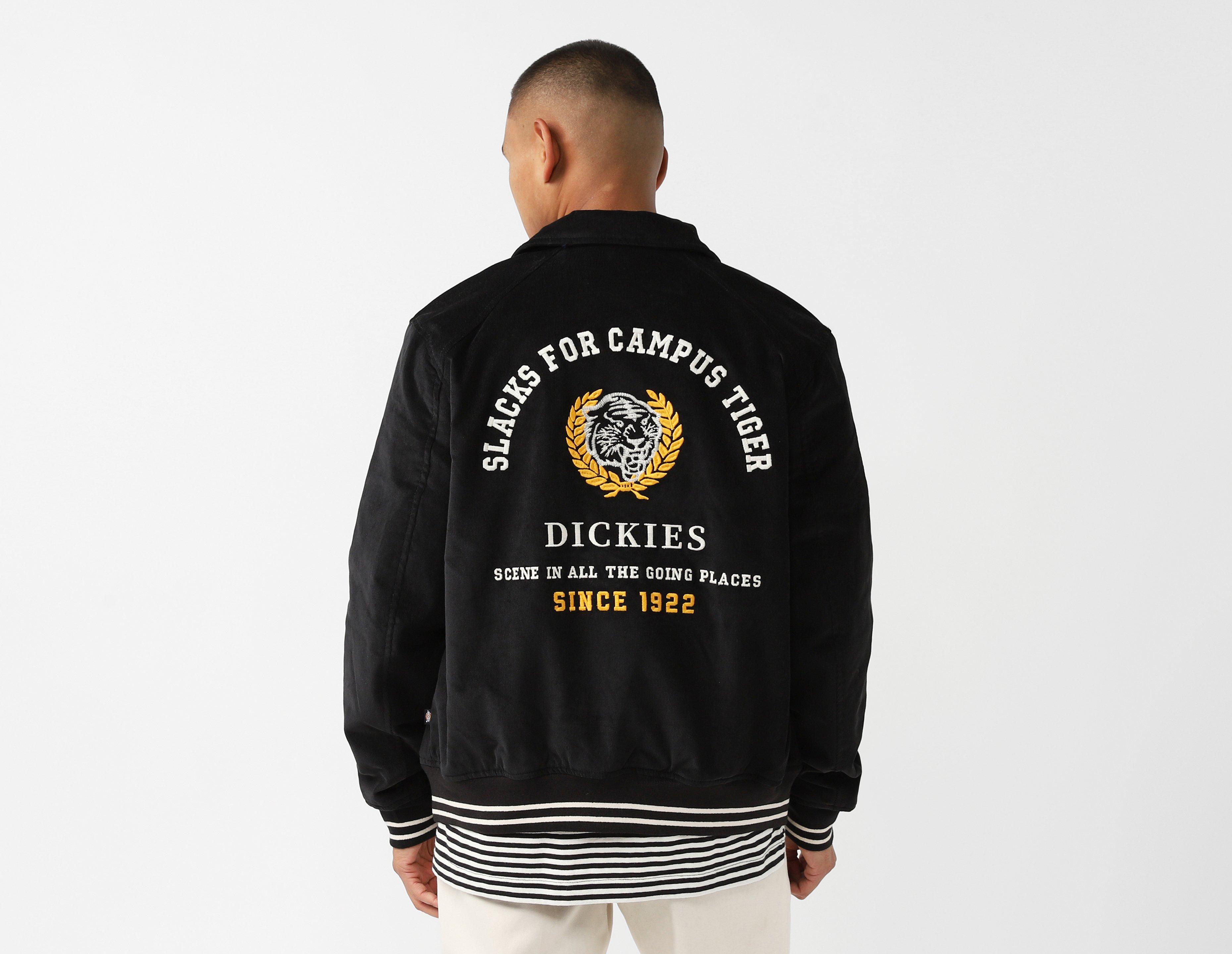 Workwear that never goes out of style, Dickies clothing is always a trustworthy, versatile option for your wardrobe. Varsity inspired and designed with robust poly-cotton, this bit of tailoring is a delight to look at and to wear. A retro byron collar and bold graphic on the reverse enhance its collegiate aesthetic, while Dickies labelling adorns the left chest. | our model is 6'0" and wears a size medium