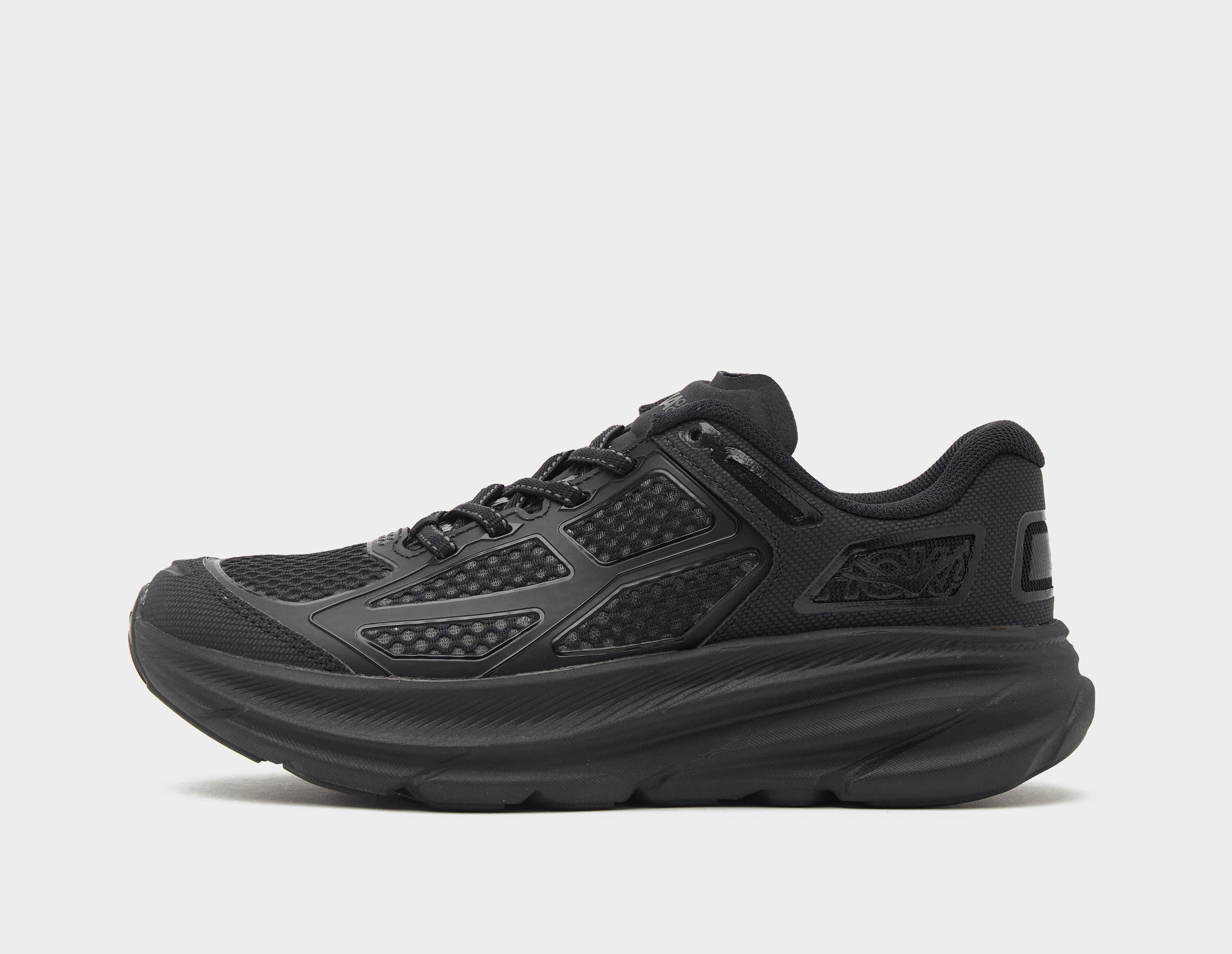 An evolvement of HOKA's Clifton lineage, the Clifton One9 takes cues from both the 1 & 9 models. The black and 'Aster Flower' upper is constructed from a porous mesh underlay, while neon TPU film overlays and synthetic toe cap and heel counters add structural support. Underfoot, advanced cushioning brings premium comfort to the retro-inspired design. | 1155370-BWR