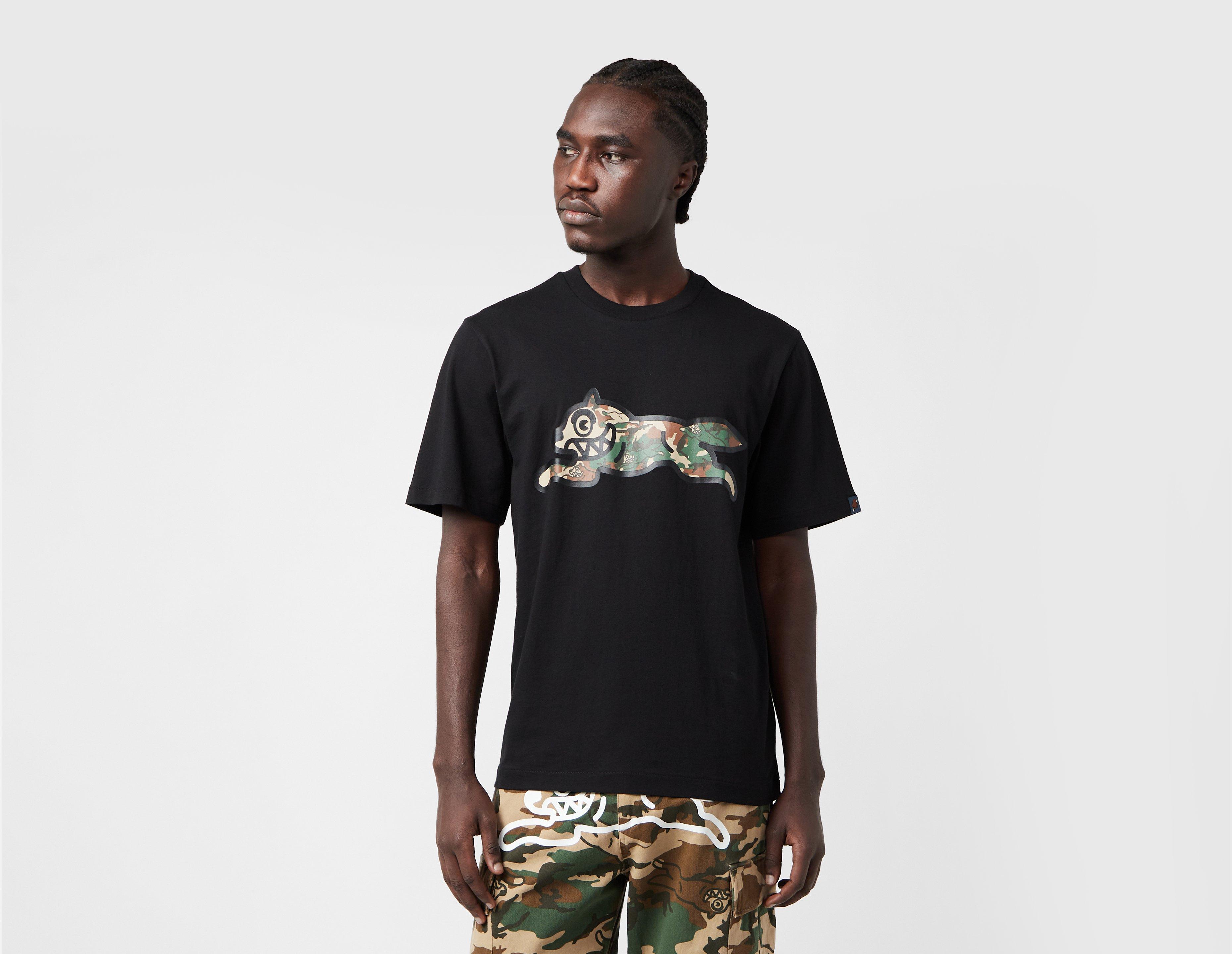 Line a hanger with ICECREAM's Running Dog T-Shirt, a light cotton layer with a camo screenprint motif and signature woven cuff label detail. | our model is 6'2'' and wears a size medium