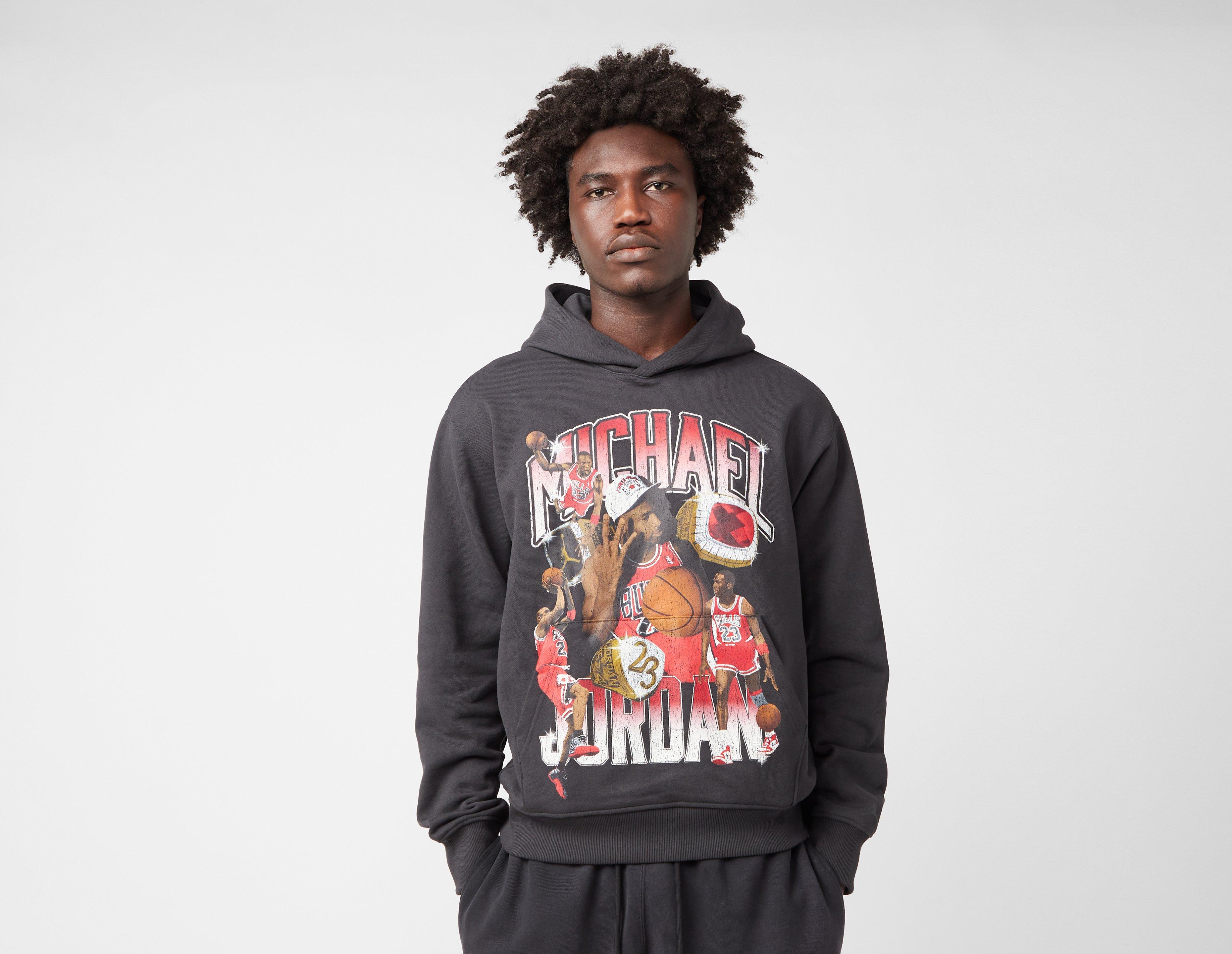 The Jordan Champion Hoodie honours MJ heritage through a fleecy cotton recipe that hosts a fixed hood, ribbed trims and an enlarged graphic print. | HJ4396-045 | our model is 6'2'' and wears a size medium