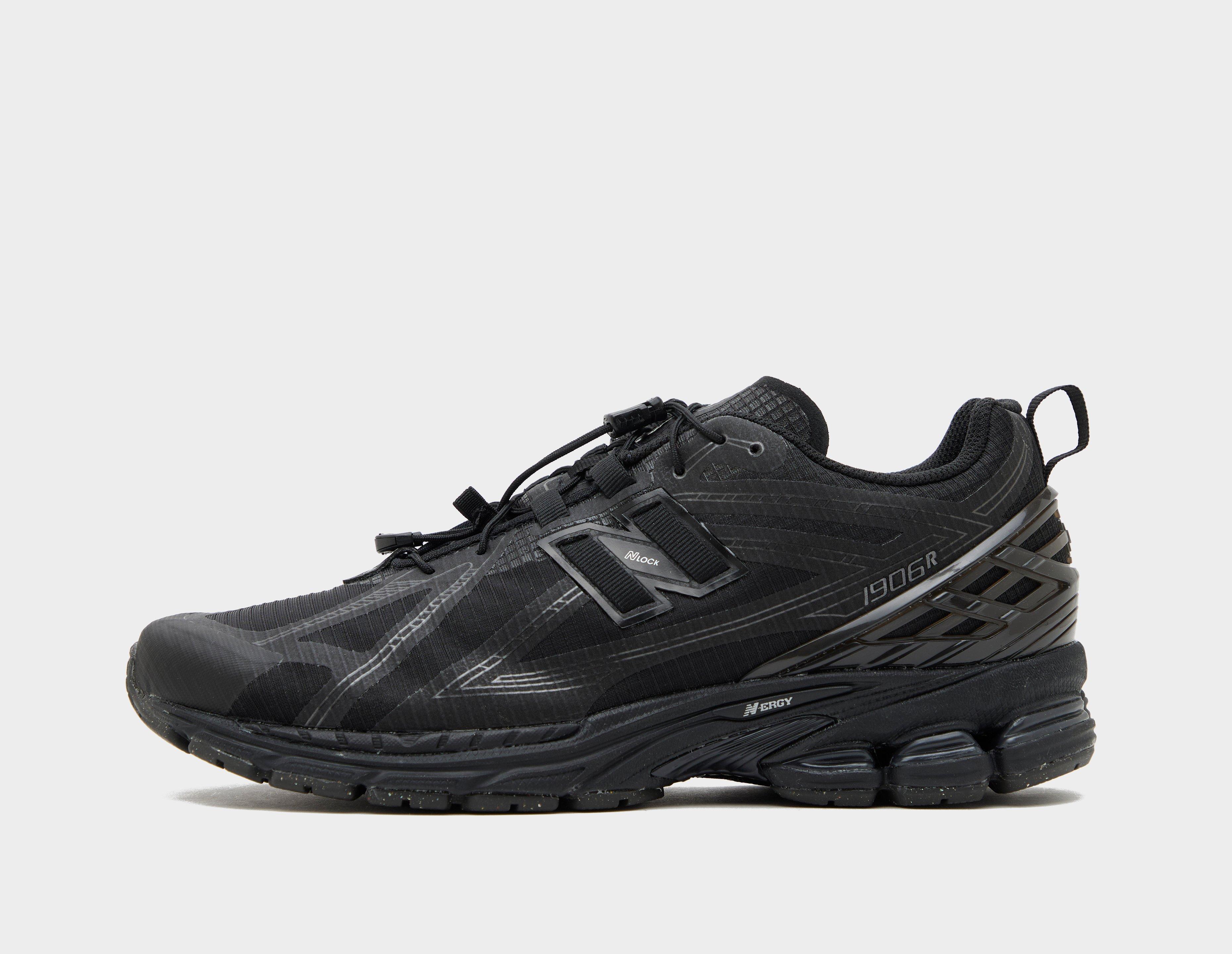New Balance strips down and upgrades its renowned 1906 silhouette, replacing leather and mesh accents with lightweight ripstop fabric and no-sew synthetic overlays. Arriving in an all-black outfit with 'Dark Silver Metallic' highlights, the 1906R No Sew opts for a technical guise with added utilitarian elements, like a toggle closure and a pull tab at the heel for easy access. Underfoot tooling remains familiar with N-ergy cushioning and a stabilising ABZORB midsole. | U1906RNB