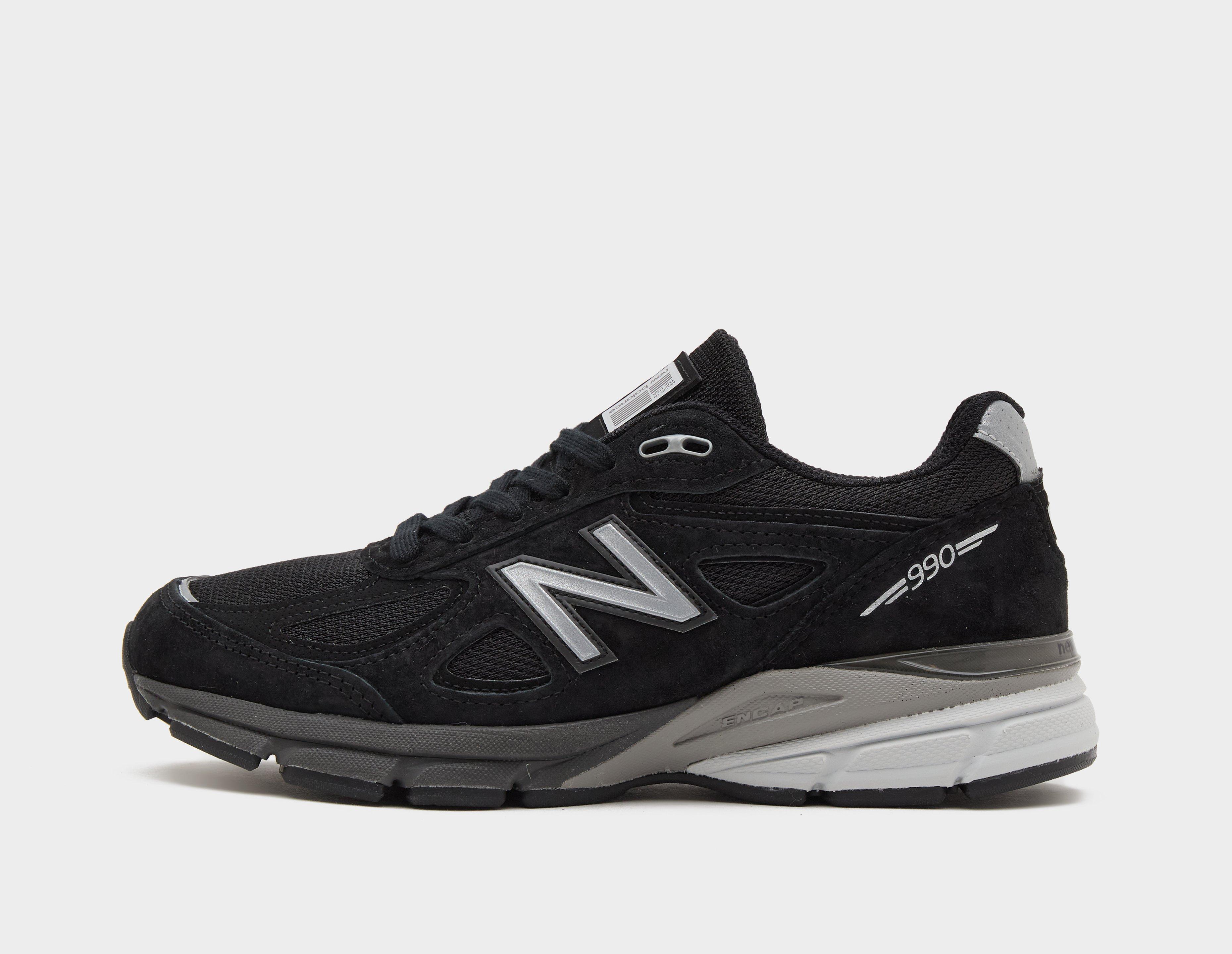 New Balance's 990v4 Made in USA lineage is a dependable model which hasn't seen diminished demand since the release of its predecessor in 1982. This modernised, stealthy black iteration hosts a mesh upper with neutral pigskin suede and mesh tooling, while ENCAP technology cushions the rubber midsole. Parallelly branding the sidewalls, slanted 'N' logos signal quality made Boston craftsmanship. | U990BL4