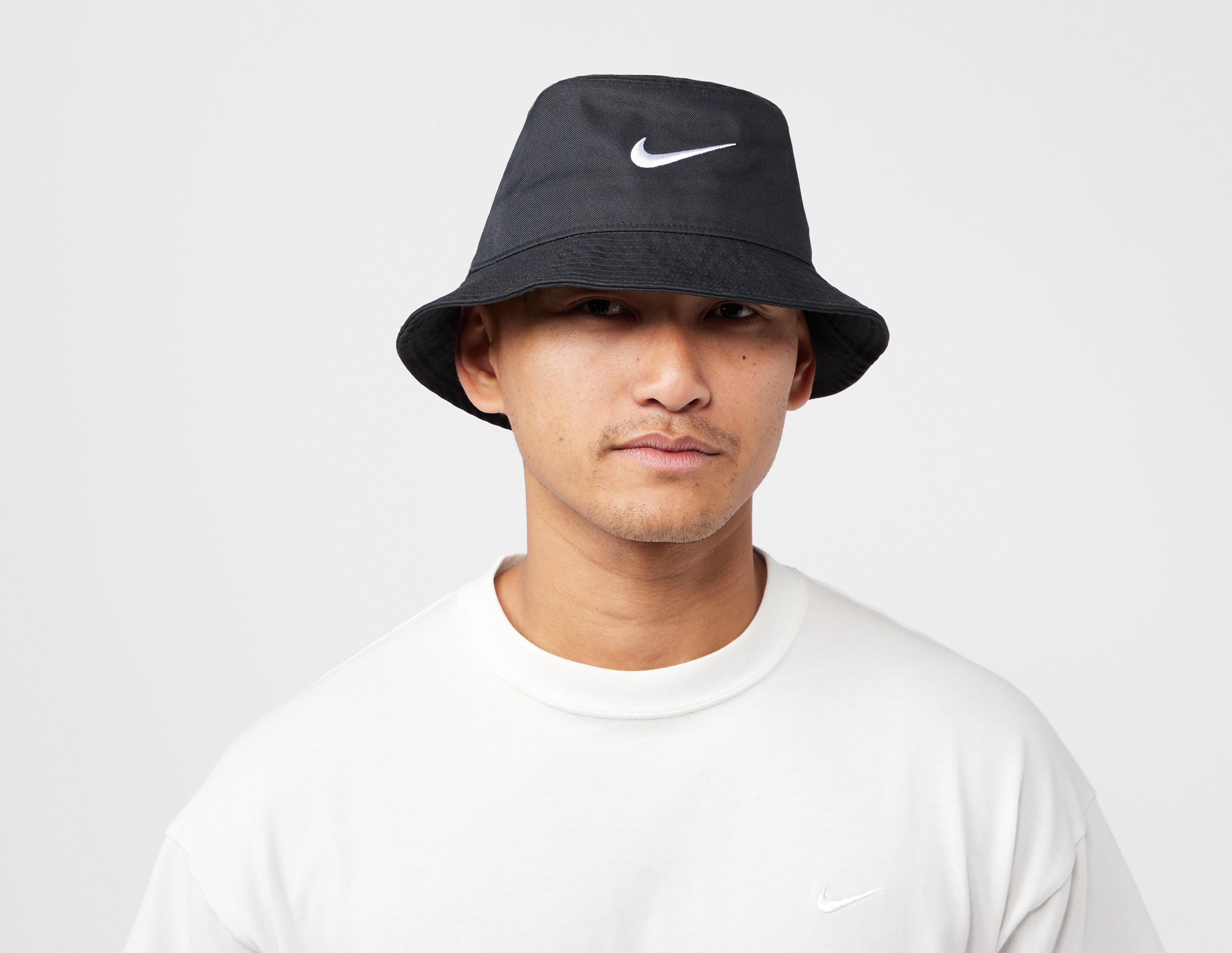 The Nike Apex Swoosh Bucket Hat is made with lightweight and sturdy fabric in a mid-depth design for 360 coverage. Crisp white Swoosh branding also sits on the upper, signing off this summer staple. | one size fits all
