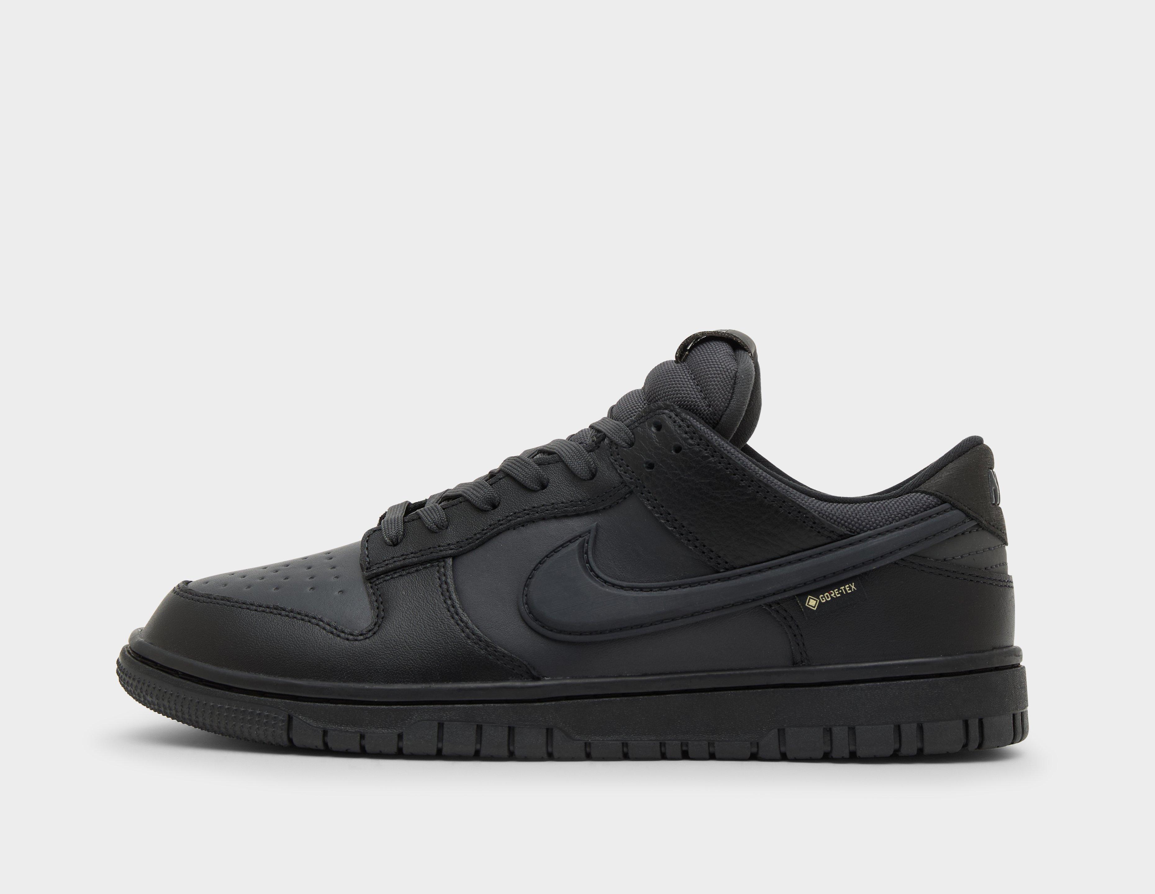 Nike readies itself for AW25 with a weatherproof take on the classic 'Triple Black' Dunk Low. Reworked for the wetter months, the upper is enveloped in GORE-TEX protection, while a rubberised Swoosh adds to the technical construction. Lightweight, responsive foam cushioning supports from the midsole, while a sticky rubber outsole anchors the design. | HQ2053-001