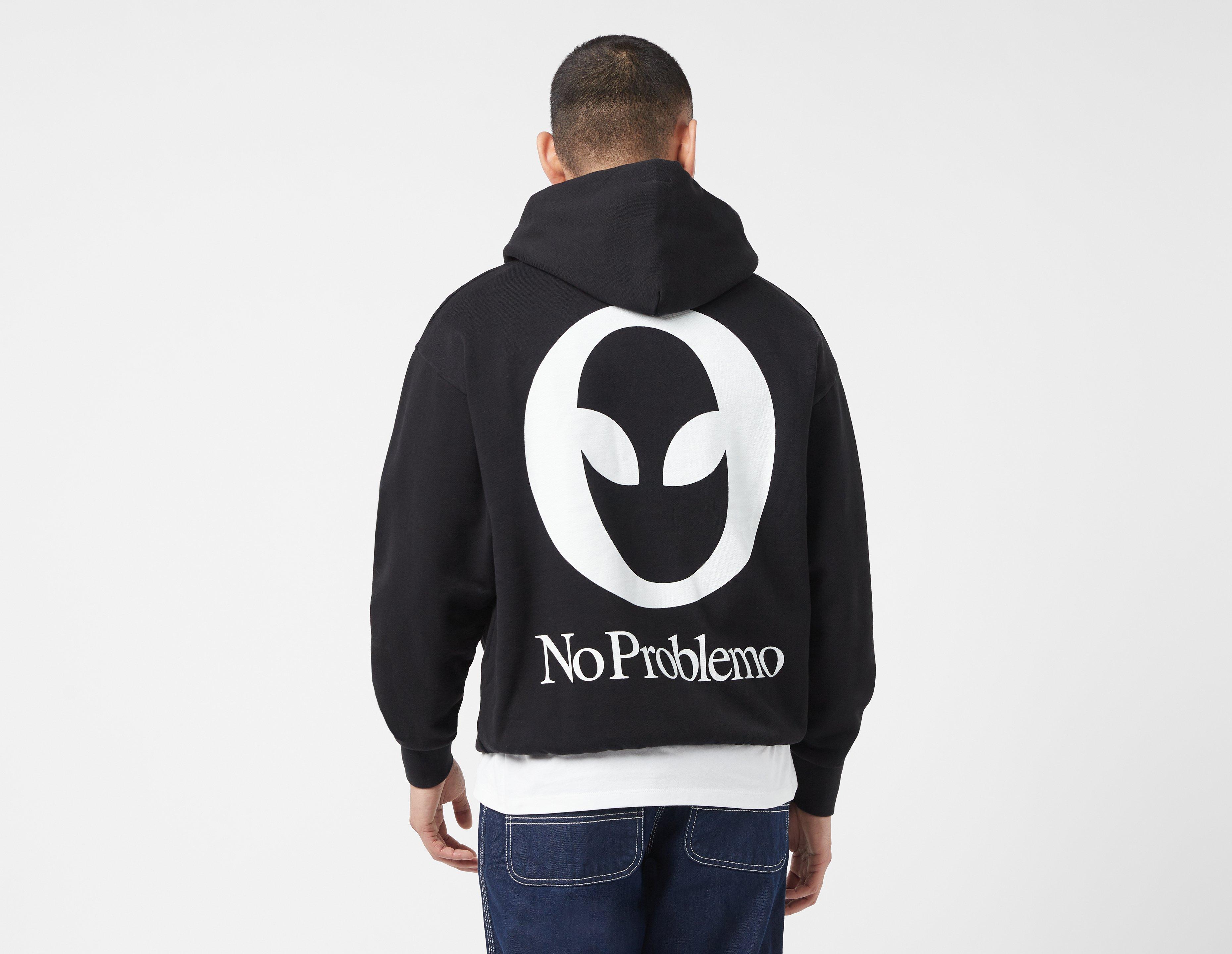 Somewhat of an icon in the No Problemo catalogue, the Alieno graphic this time makes its way onto a brushed-back cotton jersey fleece hoodie from the London brand. | our model is 6'0'' and wears a size medium___