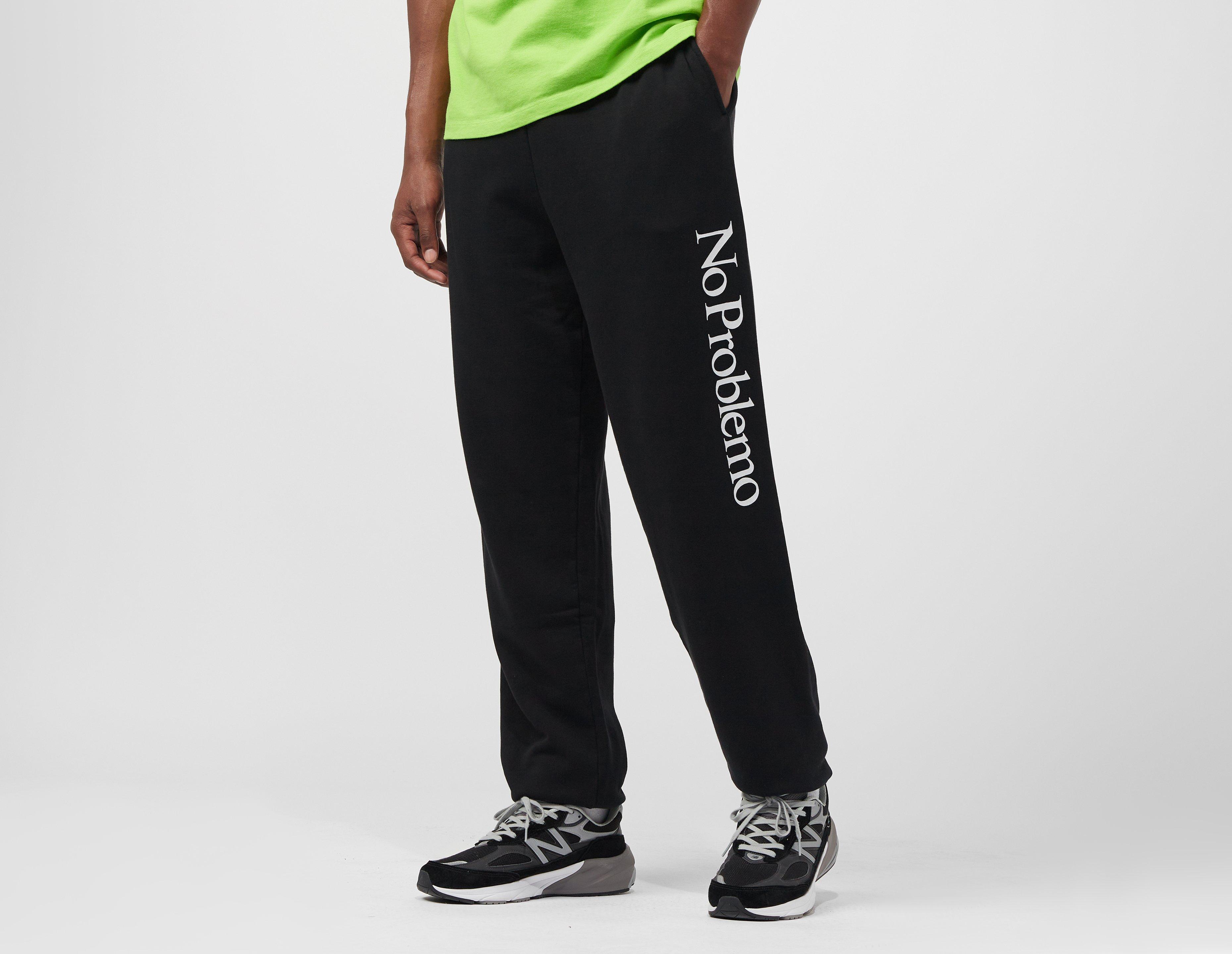 Made in Portugal, No Problemo's Logo Joggers are a brushed-back cotton fleece creation with a brand graphic on the left leg. | our model is 6'2'' and wears a size medium