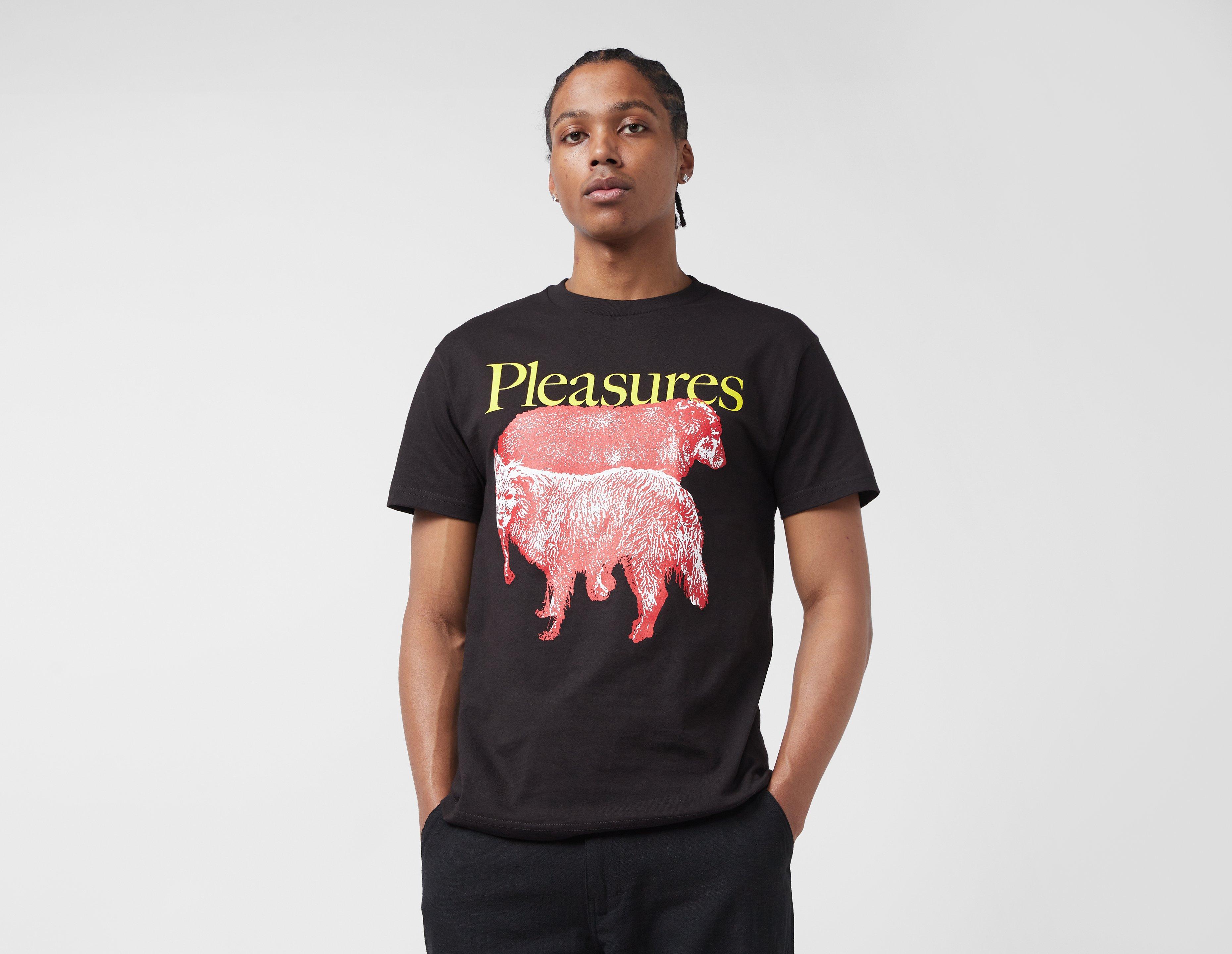 A statement piece from Cali label here sporting a titular bold graphic to the front. PLEASURES branding supplies authenticity and a cotton build confirms comfort. | our model is 6'2" and wears a size medium