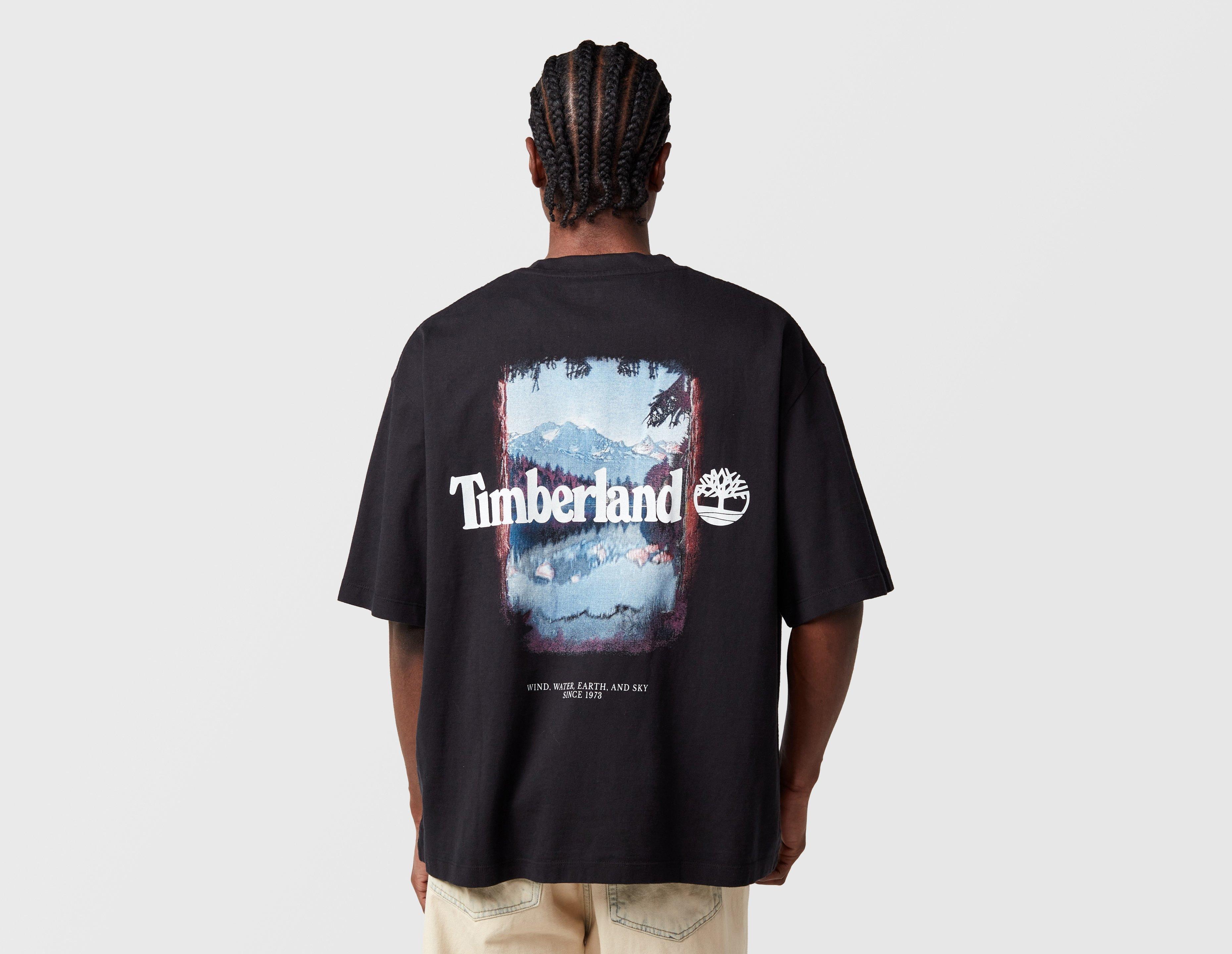 Timberland's Outdoor T-Shirt is informed by soft cotton and cut to a loose, boxy fit. Graphic prints adorn the chest and reverse. | our model is 6'0.5" and wears a size medium