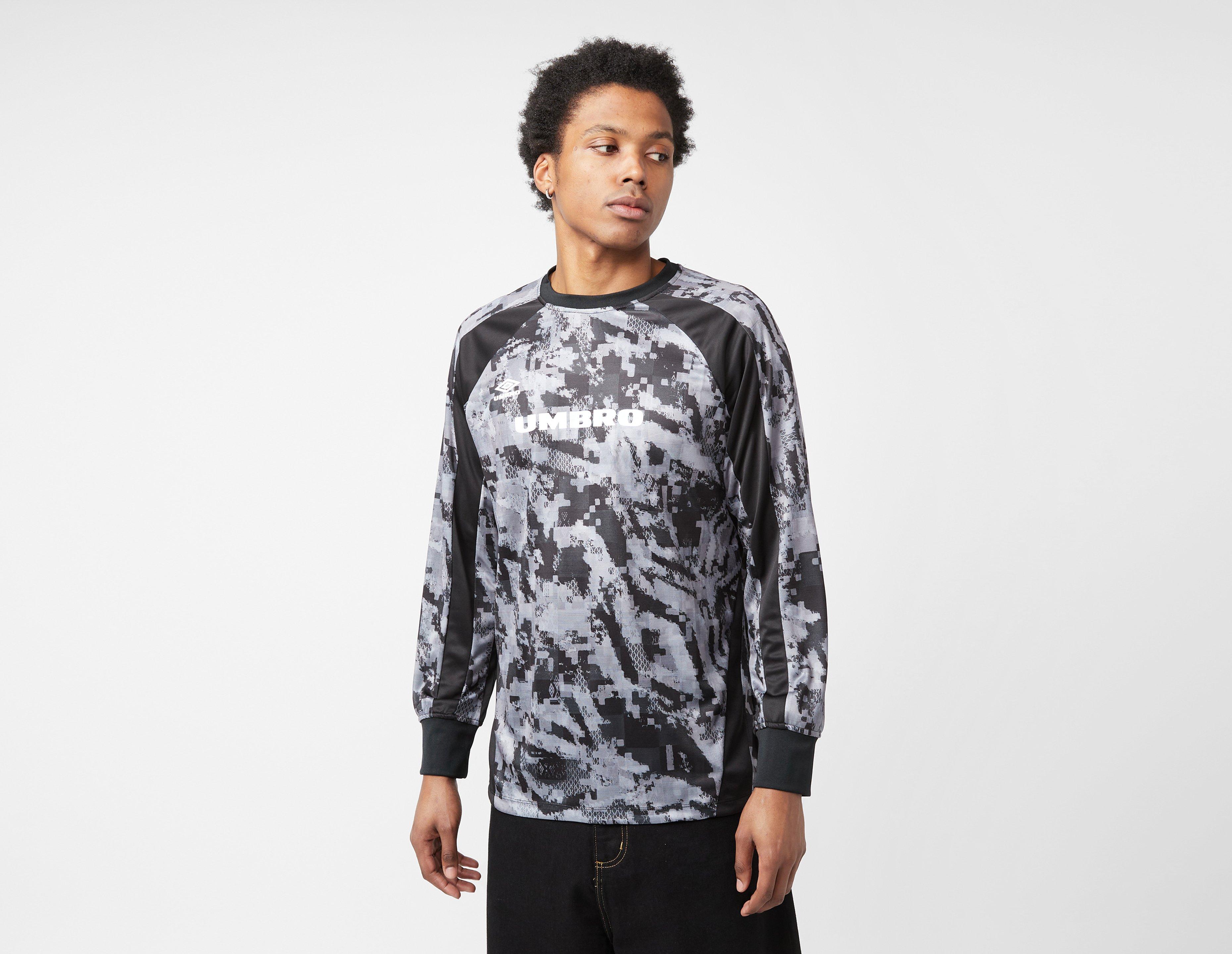 Umbro's 'Northern Quarter' collection reimagines the sportswear label's instantly recognisable styles through a contemporary guise. The Long Sleeve Jersey is a digital camo recipe that's cut from polyester to a relaxed fit and houses raglan sleeves, contrast panels ribbed cuffs. Ideal spring layer. | our model is 6'2'' and wears a size medium
