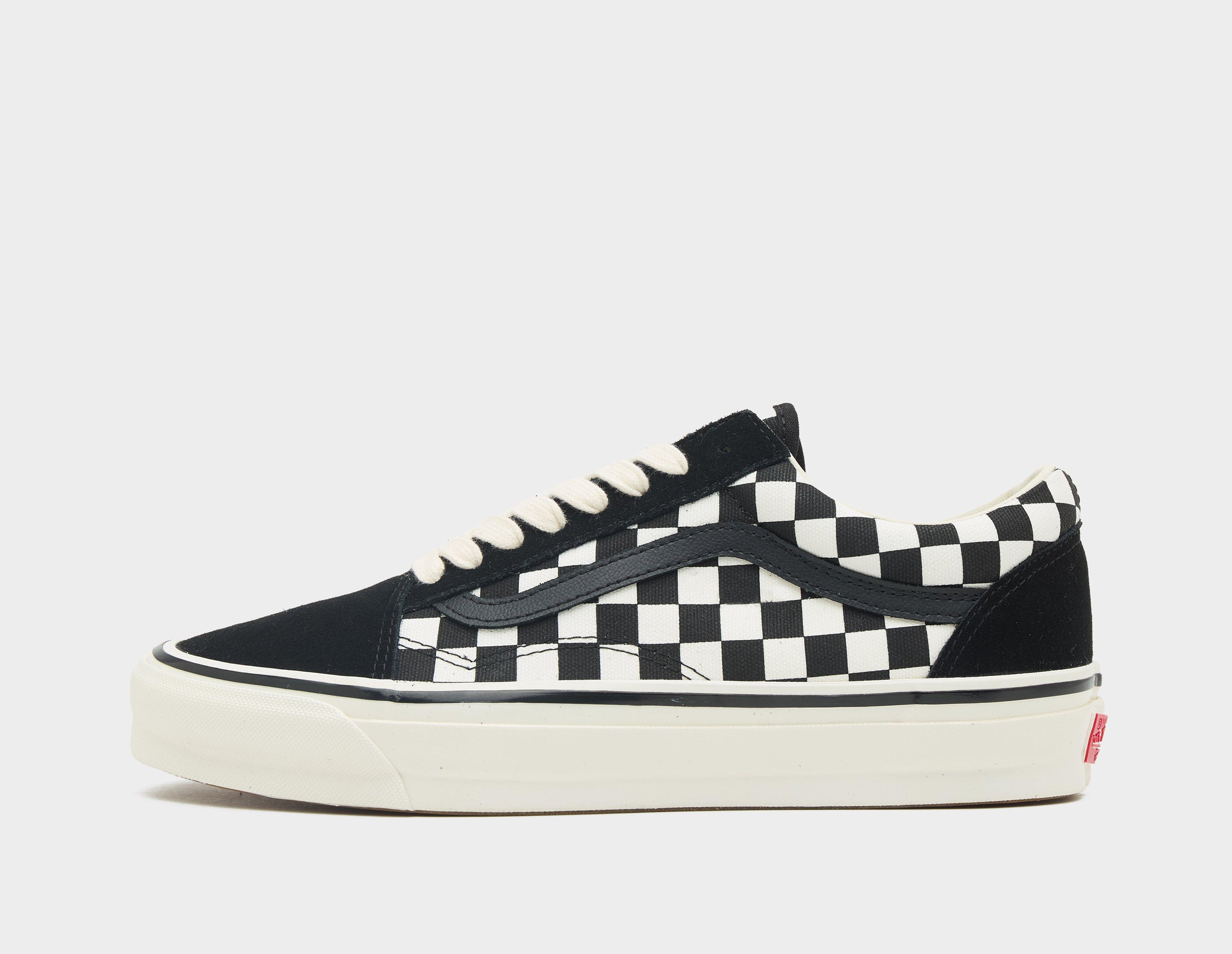 Vans #36 made its debut in 1977 and was the first model to feature the now-famed 'Jazz Stripe', or Sidestripe. Today, the Old Skool arrives in a classic black and checkerboard outfit, featuring velvety suede on the toe, heel and eyestay, while durable canvas coats the rest of the upper. Underfoot, glossy foxing tape attaches to the white sole unit, including a black Waffle sole, and is finished with a red and white license plate. | VN000D56BZW1