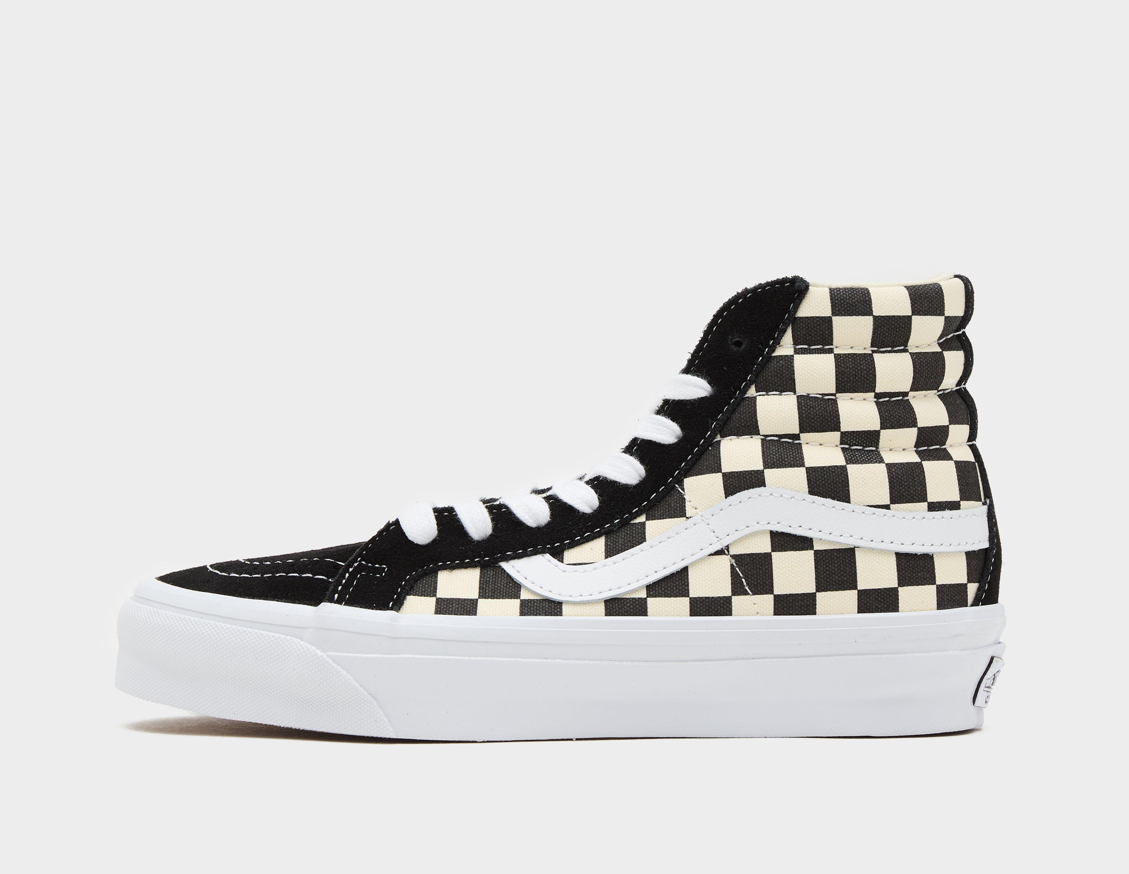 The black and off-white checkered Sk8-Hi from Vans gets reissued - a timeless look which caters to all generations. The uppers arrive in canvas, with overlaid suede reinforcements and a white Sidestripe signalling the Californian brand's well-rooted heritage. Moving down, a waffled rubber sole ensures grip on-and-off the board, while license plates get branded onto the heels. | VN000CR02BO