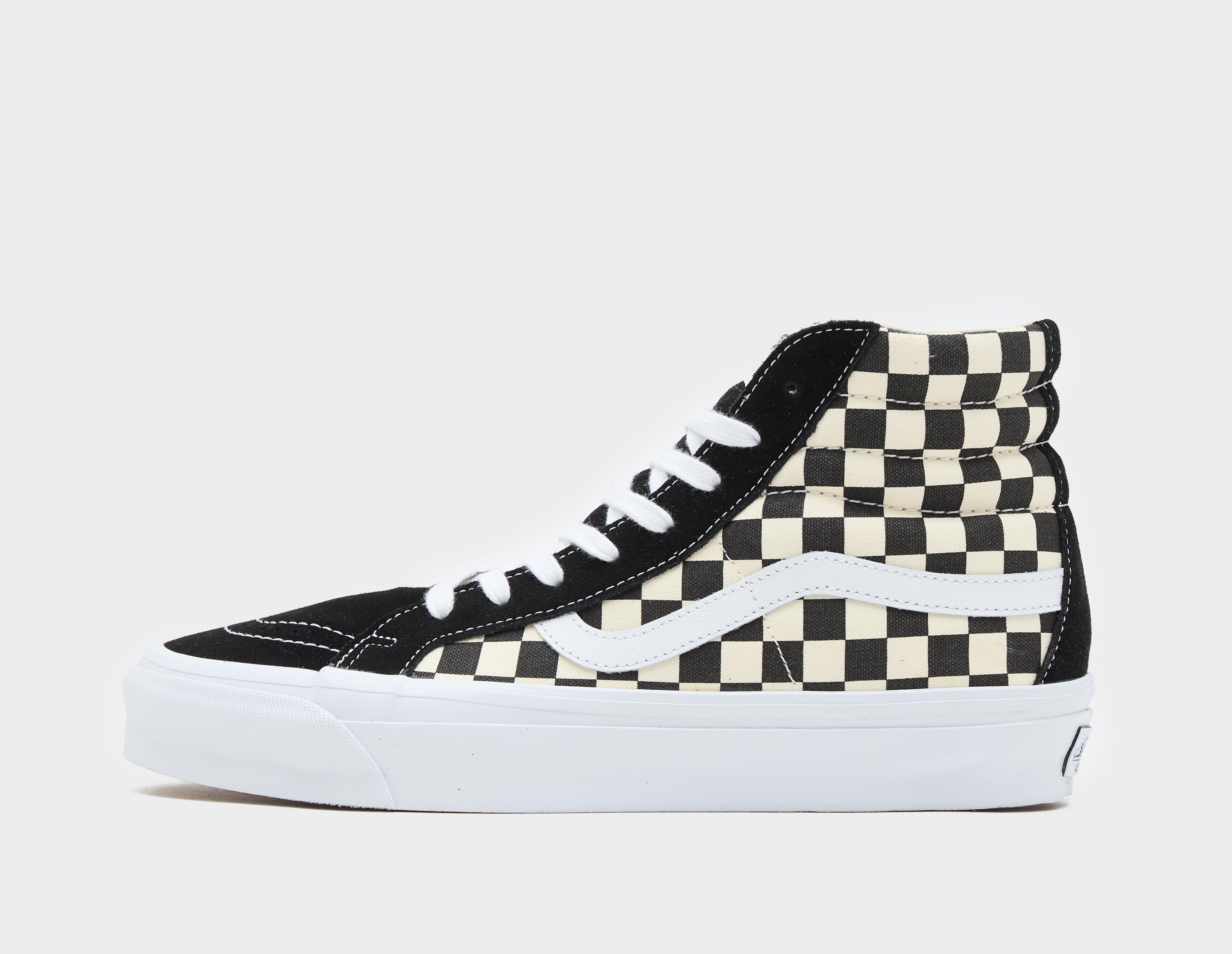 The black and off-white checkered Sk8-Hi from Vans gets reissued - a timeless look which caters to all generations. The uppers arrive in canvas, with overlaid suede reinforcements and a white Sidestripe signalling the Californian brand's well-rooted heritage. Moving down, a waffled rubber sole ensures grip on-and-off the board, while license plates get branded onto the heels. | VN000CR02BO