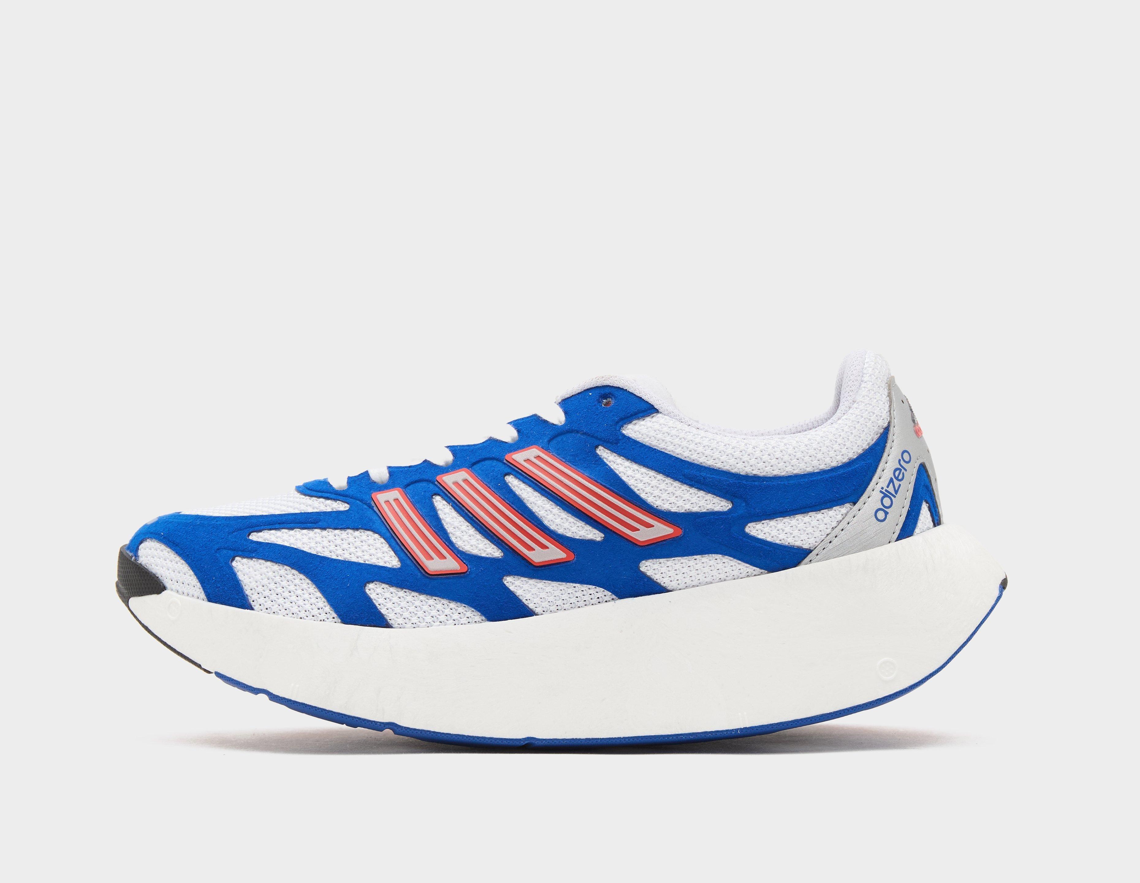 Blending an archival running design with cutting-edge contemporary technology, the Aruku is a new member of the Adizero lineage. Getting its name from the phrase 'to walk' in Japanese, the Aruku with its curved rocker midsole unlocks a cloud-like sensation everywhere from the commute to the coffee shop. Up top, it's breathable mesh topped with blue synthetic caging, while down below, it's an all-new Swirlfoam sole unit that's infused with nitrogen for a superior underfoot experience. | JQ7392