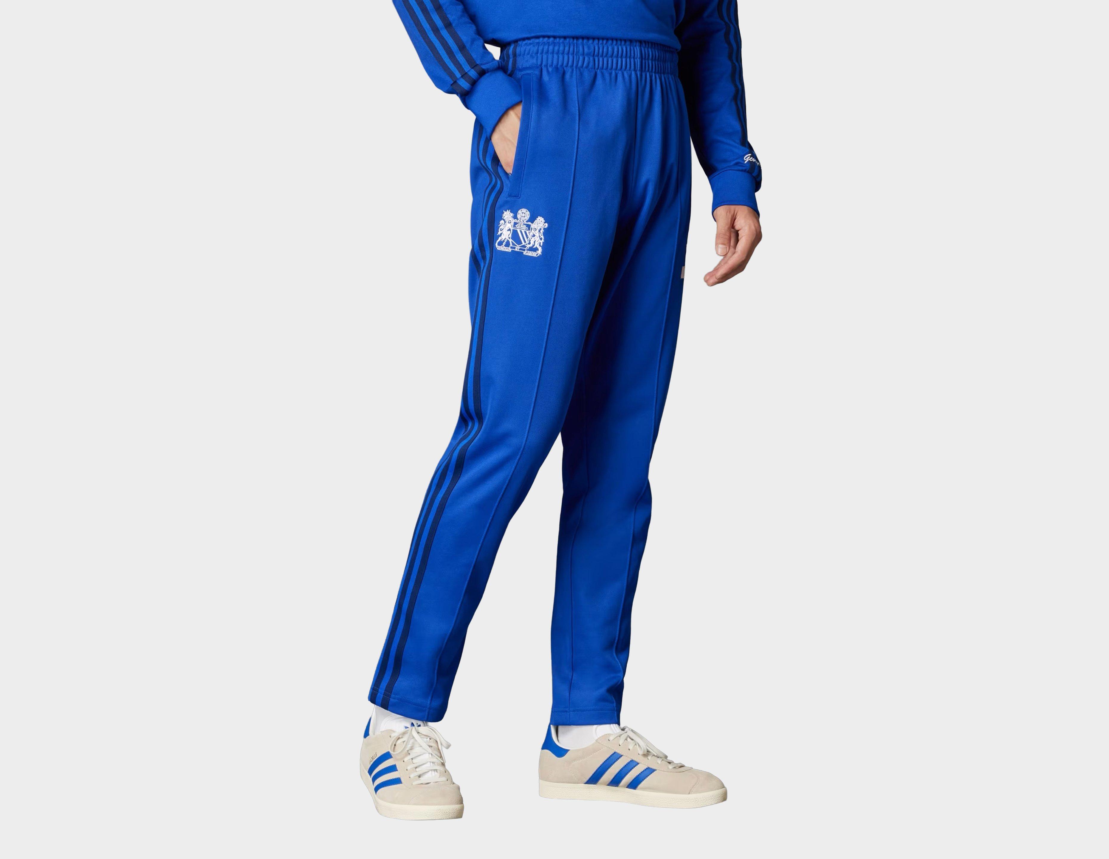The adidas Originals Manchester United George Best Track Pants are cut to a slim fit from a part-recycled polycotton blend. Tonal 3-Stripes adorn the seams, while welt pockets stash your essentials and an elasticated waist is adjusted with a drawcord. Manchester coat of arms and Trefoil embroidery adorn the thighs. | IV7538 | our model wears a size medium