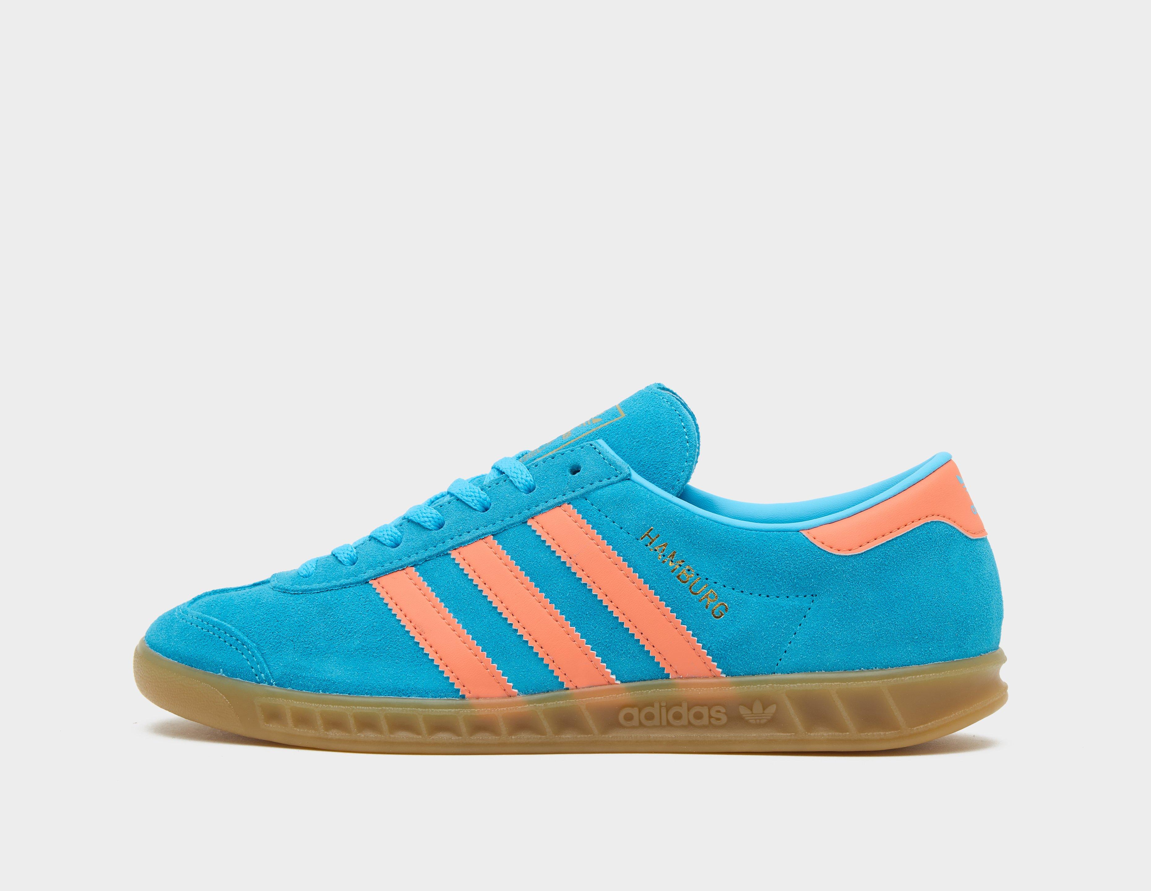 A style that's unique among other notable 'City Series' designs, the adidas Originals Hamburg incepted back in the '80s. This rendition opts for a premium 'Sky Rush' leather upper and hosts contrast 'Semi Coral' 3-Stripes and a tonal double-stitched T-toe. Underlining the above, a grooved gum outsole ensures hardened grip, while gold foiling etches off across the lateral walls. | JS0682