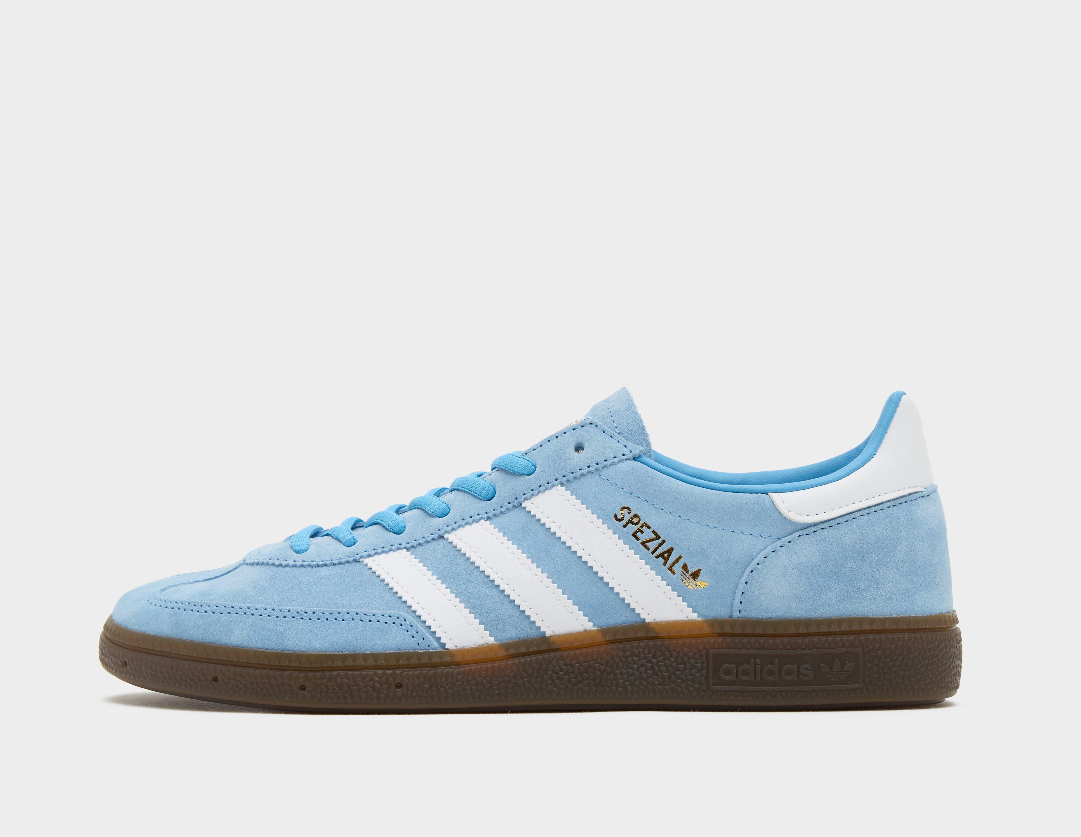 First released in 1979 adidas launched what became to be one of their most iconic styles today. The Handball Spezial was one of the best lightweight shoes for indoor sport of its time. This iteration is presented in an iconic 'Bluebird' colourway, dressing thesilhouette's supple suede uppers. White leather constructs the signature three stripe branding on the sidewall, while underneath the pair sit upon a gum rubber cupsole. Finishing the model, woven Spezial branding decorates the thinly padded tongue, completed with a set of rounded laces | BD7632