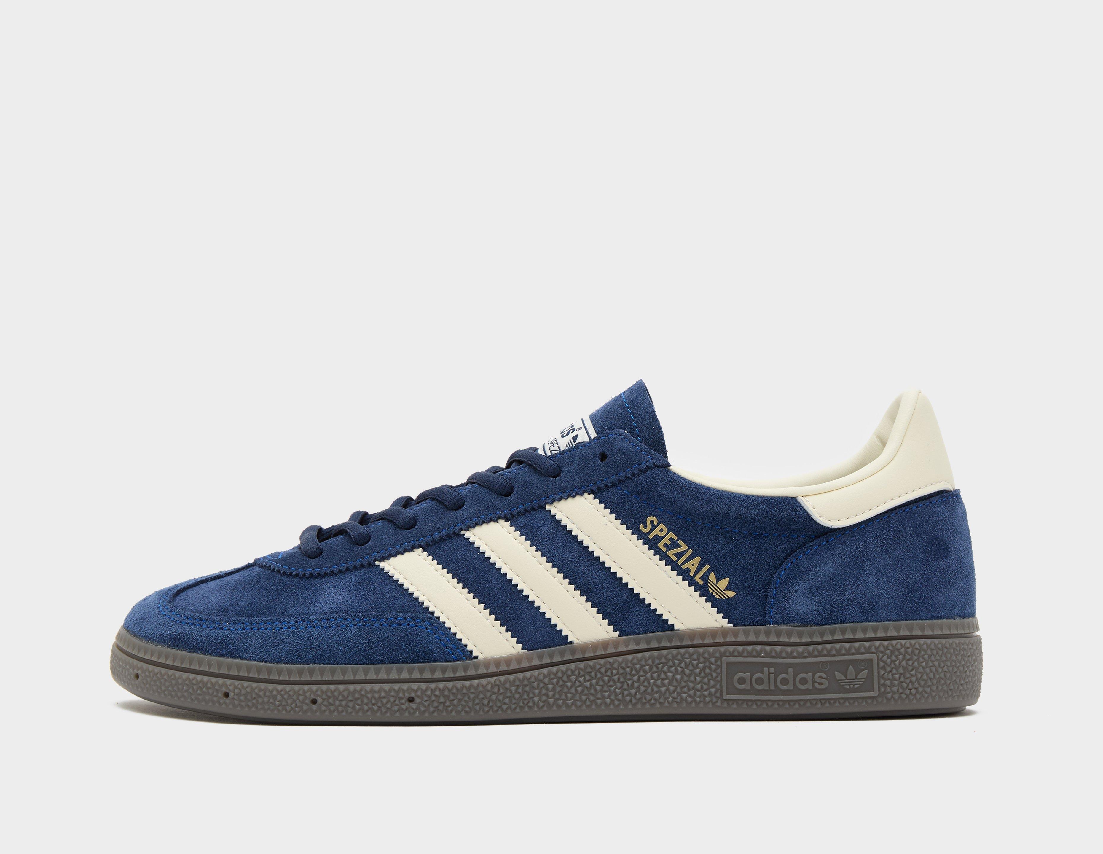 Originally designed for the national German handball team, the adidas Originals Handball Spezial is a sought-after silhouette with everyday appeal. The 'Night Indigo Cream' colourway houses a velvety suede upper, with enveloping T-toe tooling - what sets it apart from the others. Below, a gum sole evokes terrace charm, and gold Spezial foiling etches off above the lateral 3-Stripes. | IF7087