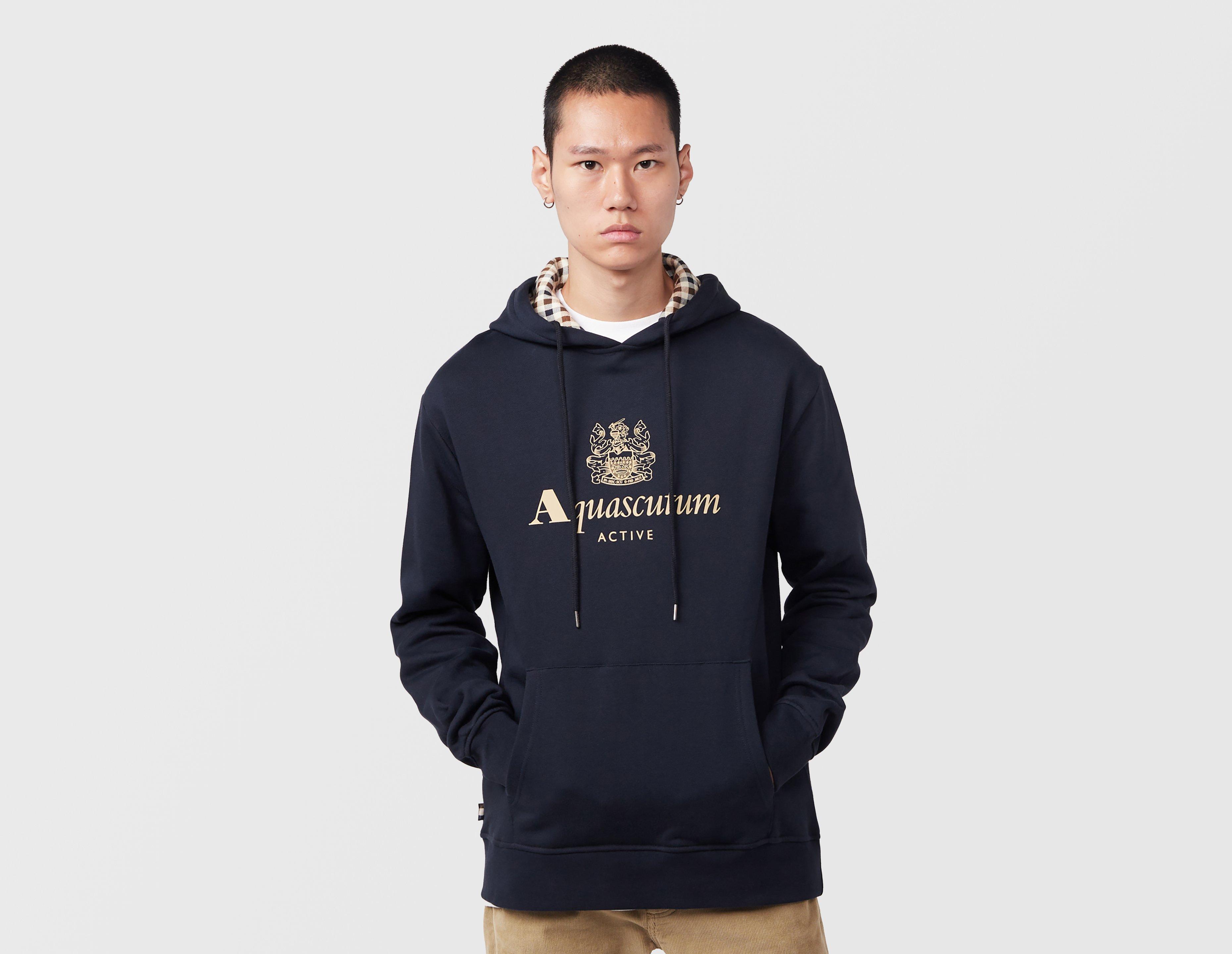 A luxury terrace staple. The Aquascutum Active Big Logo Hoodie is cut from brushed 330gsm fleece to a regular fit with 1:1 rib trims, 'Club Check' hood lining and a brand logo graphic print across the chest. | our model is 6'0'' and wears a size medium