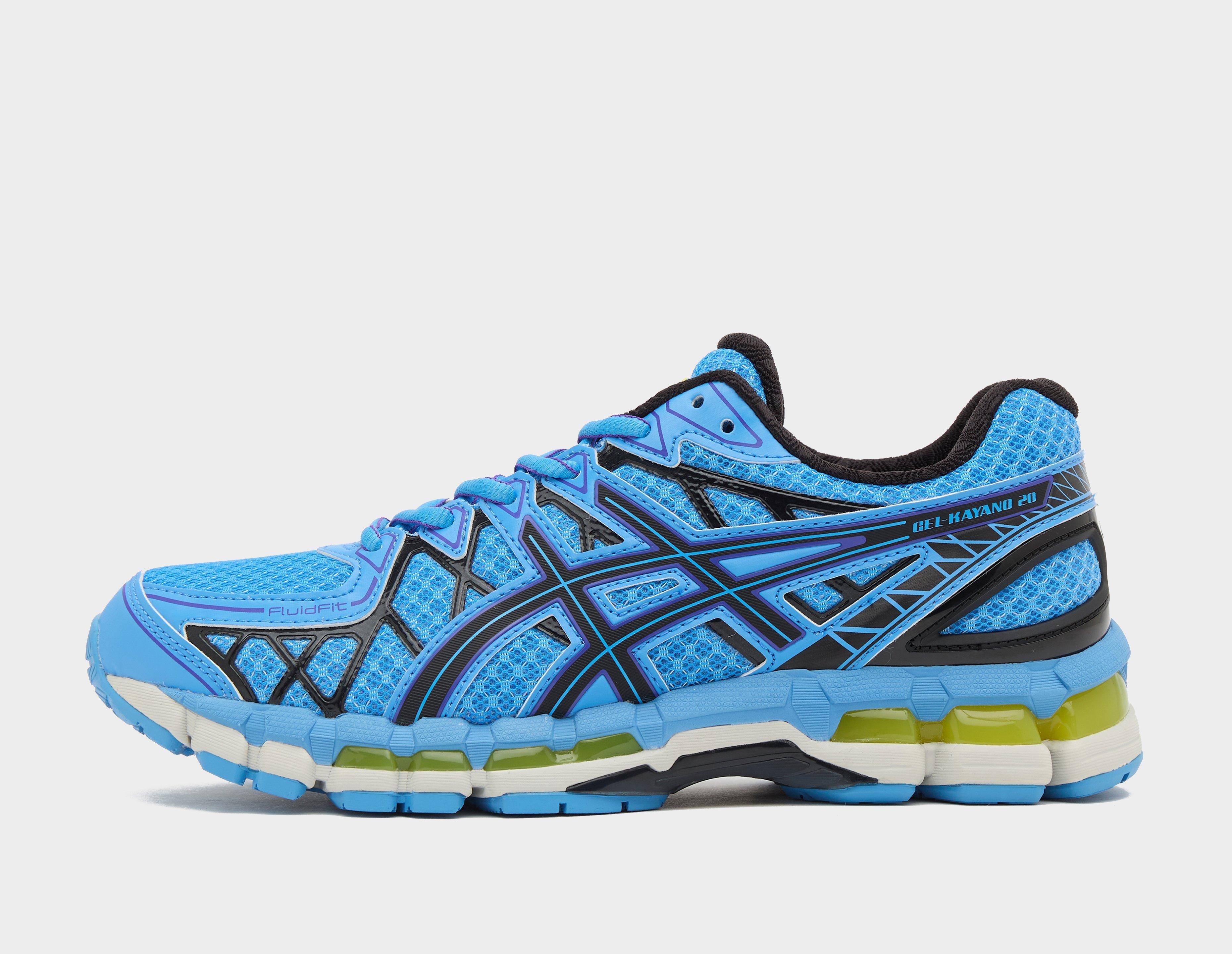 Launched in 2013, the GEL-KAYANO 20 draws inspiration from buildings, cars and technical shapes that populate the urban landscape. A breathable 'Blue Neptune' mesh upper is topped with FLUIDFIT caging for a secure fit and a criss-cross black TPU application for increased support. Below, a GUIDANCE TRUSSTIC support system and dual GEL technology keep things comfy underfoot. | 1203A388.400