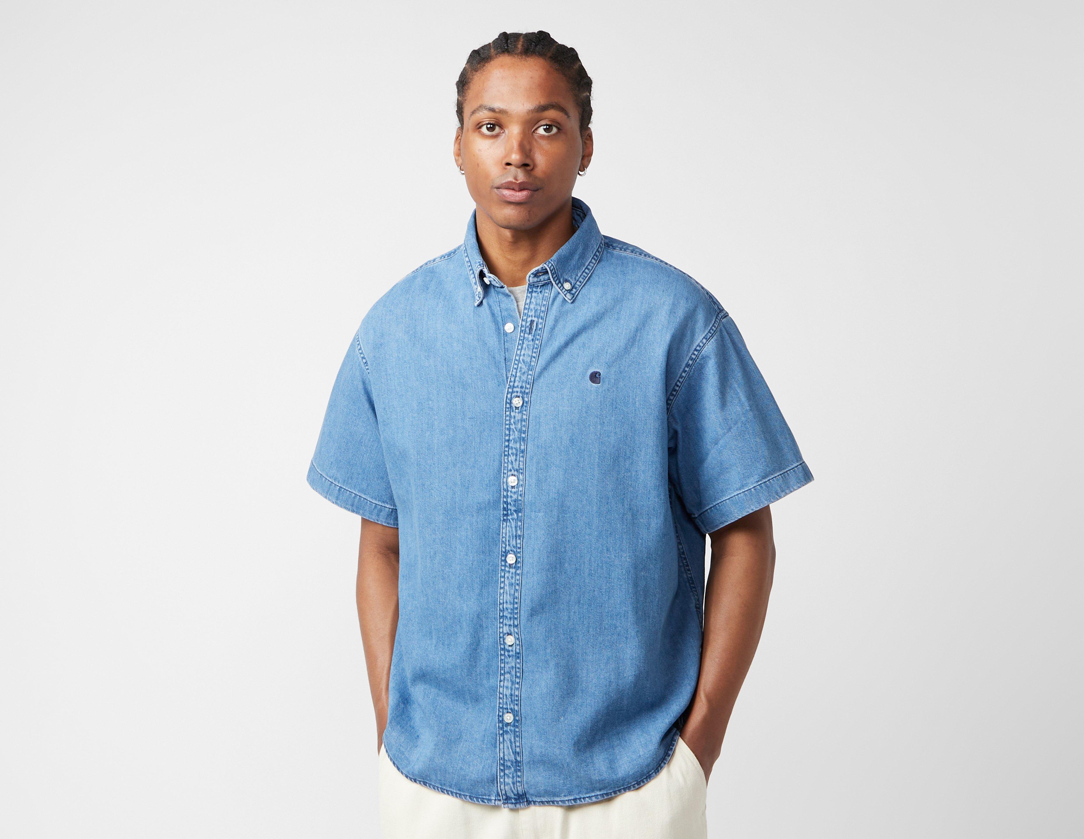 Crafted from midweight cotton denim, the Carhartt WIP Lucas Shirt is the ideal layer piece for all seasons. Doused in a blue hue, a loose fit and button front join the mix alongside an embroidered 'C' motif, adding a dose of Detroit heritage. | our model is 6'2" and wears a size medium