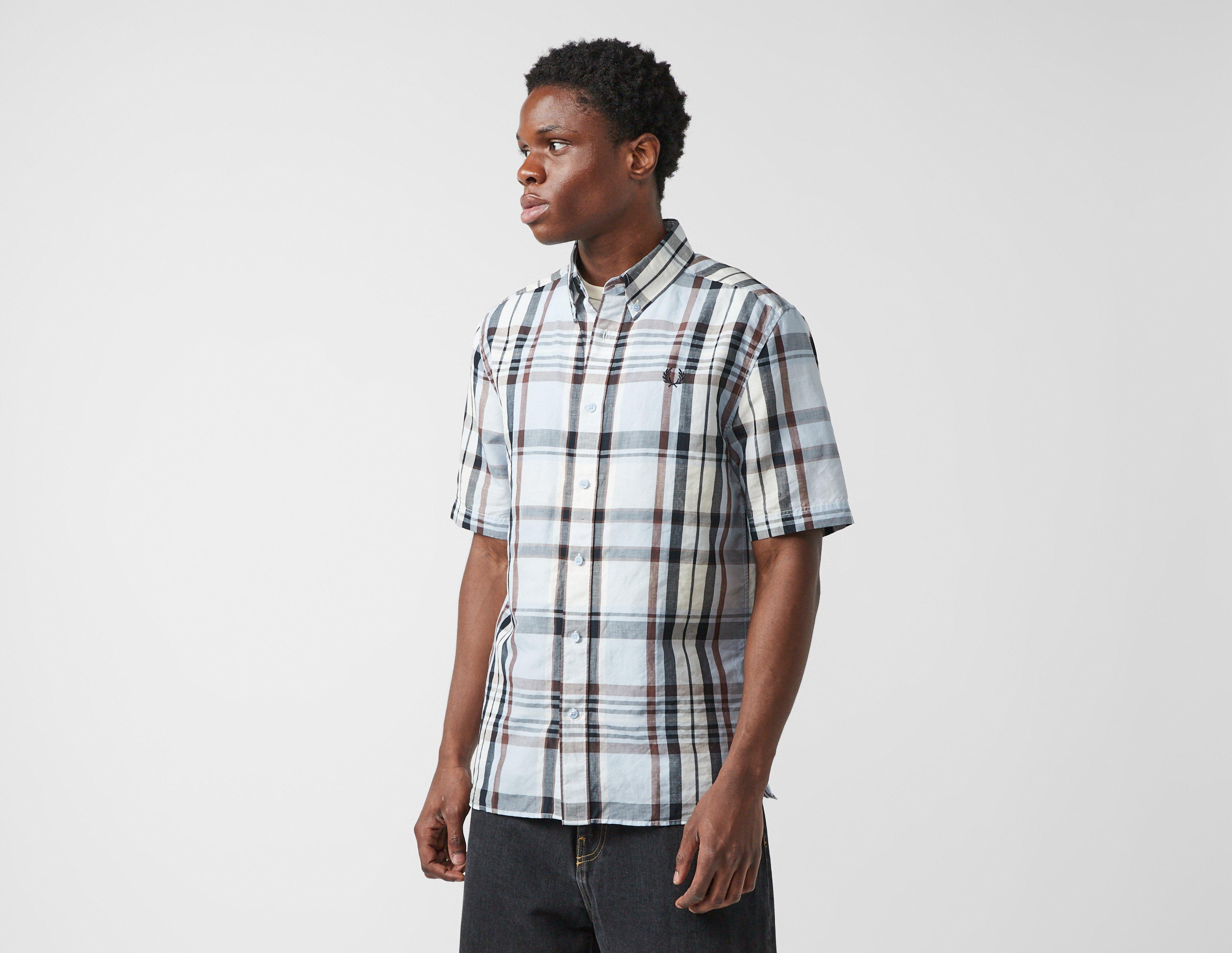 Yarn-dyed, Fred Perry's Madras Shirt is a chequered layer composed of a crisp cotton and linen poplin blend that's cut to a regular fit. Laurel Wreath embroidery signals British heritage at the chest. | our model is 6'1'' and wears a size medium