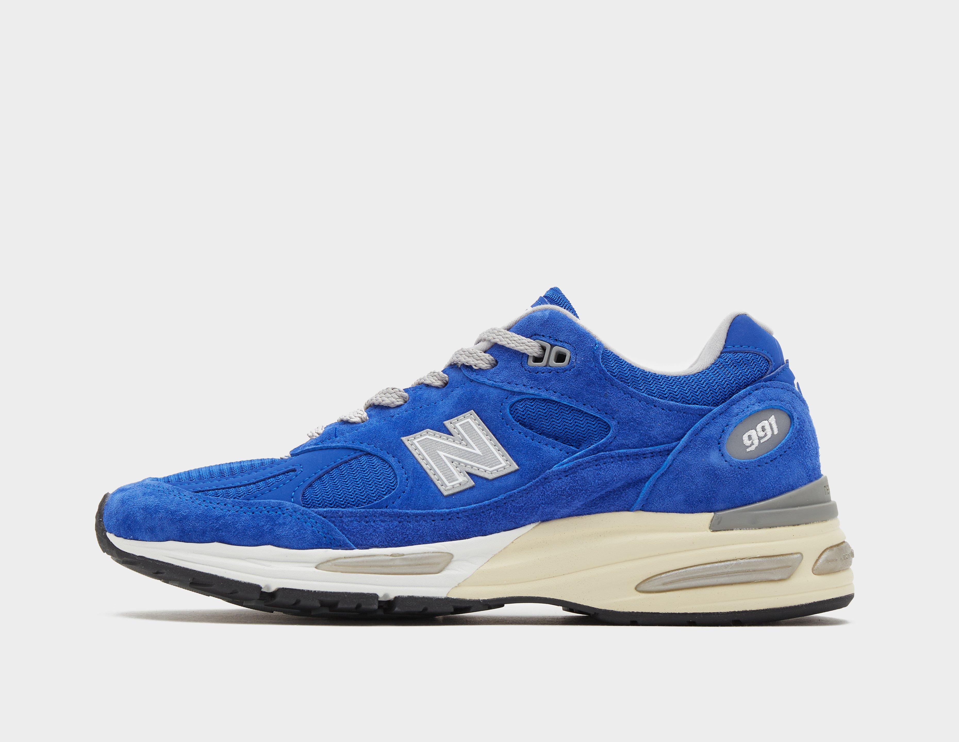 New Balance offer up a bold 'Dazzling Blue' iteration of its famed 991v2 Made in UK lineage. Breathable mesh lays the groundwork for the uppers, which are strapped up in technical suede overlays. Moving down, an ENCAP midsole ensures all-day-long comfort, and is reinforced by full-length FuelCell cushioning. Logo embroidery adorns the tongue and heel cap to round up. | U991BL2