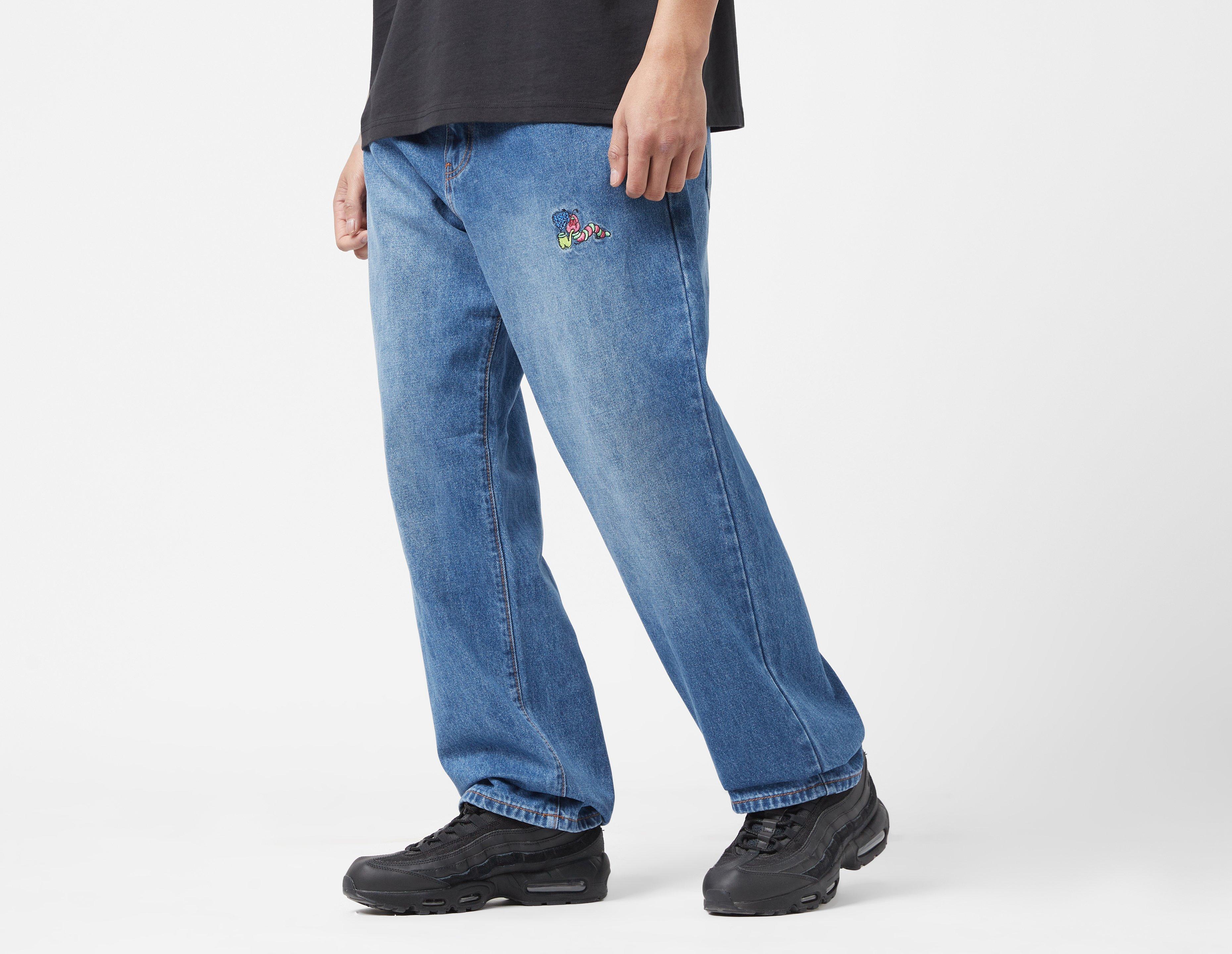 Crafted from dark washed denim, the High Couture Pants from Pas de Mer are an elegant showcase of Italian influence in the streetwear division. Embroidery sits atop the upper left thigh, with further brandings at the back alongside brand patching. | our model is 6'0" and wears a size 32" waist