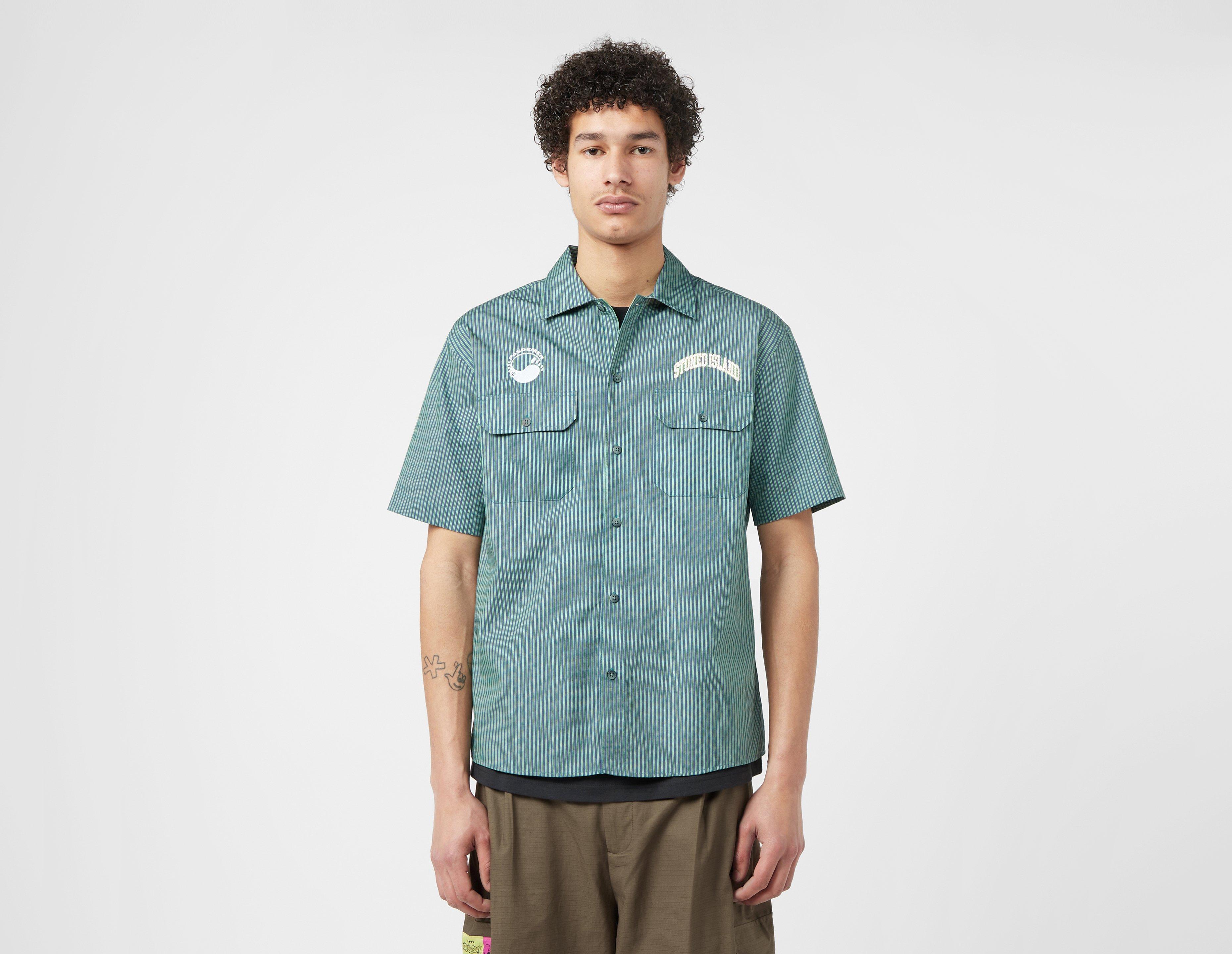 Pas de Mer's Stoned Island Shirt is a parodic spirited creation from the Italian streetwear stylists, with button down pockets and embroidery across the chest. | our model is 6'4'' and wears a size medium