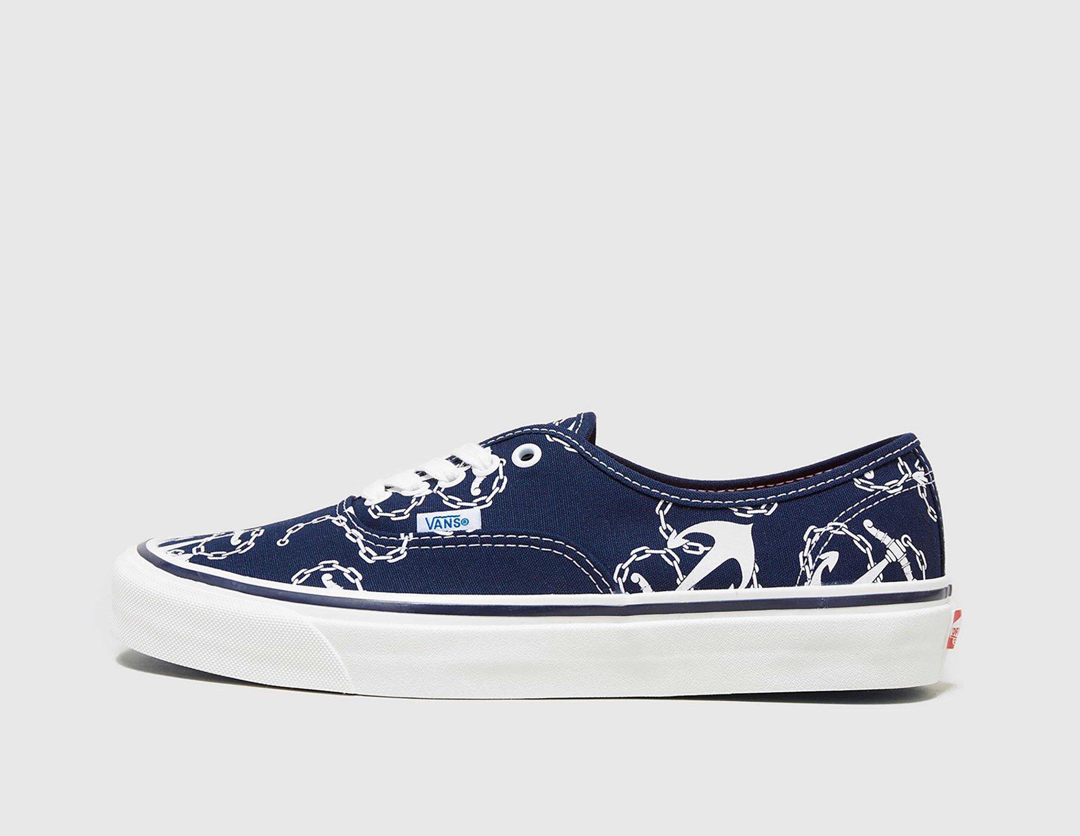 Inspired by an inaugural silhouette produced by Vans' very first factory in Anaheim, the Vans Authentic Anaheim 44 Deck DX arrives with a slew of heritage inspired features. The anchor pattern harks back to a design from the '70s, whilst the shoe is modelled with high gloss foxing tape and original style number for a truly retro aesthetic. The classic number plate appears to the back, and the shoe is finished with a comfy OrthoLite sock-liner and waffled rubber outsole for optimal grip. | VN0A5JMQNVY1