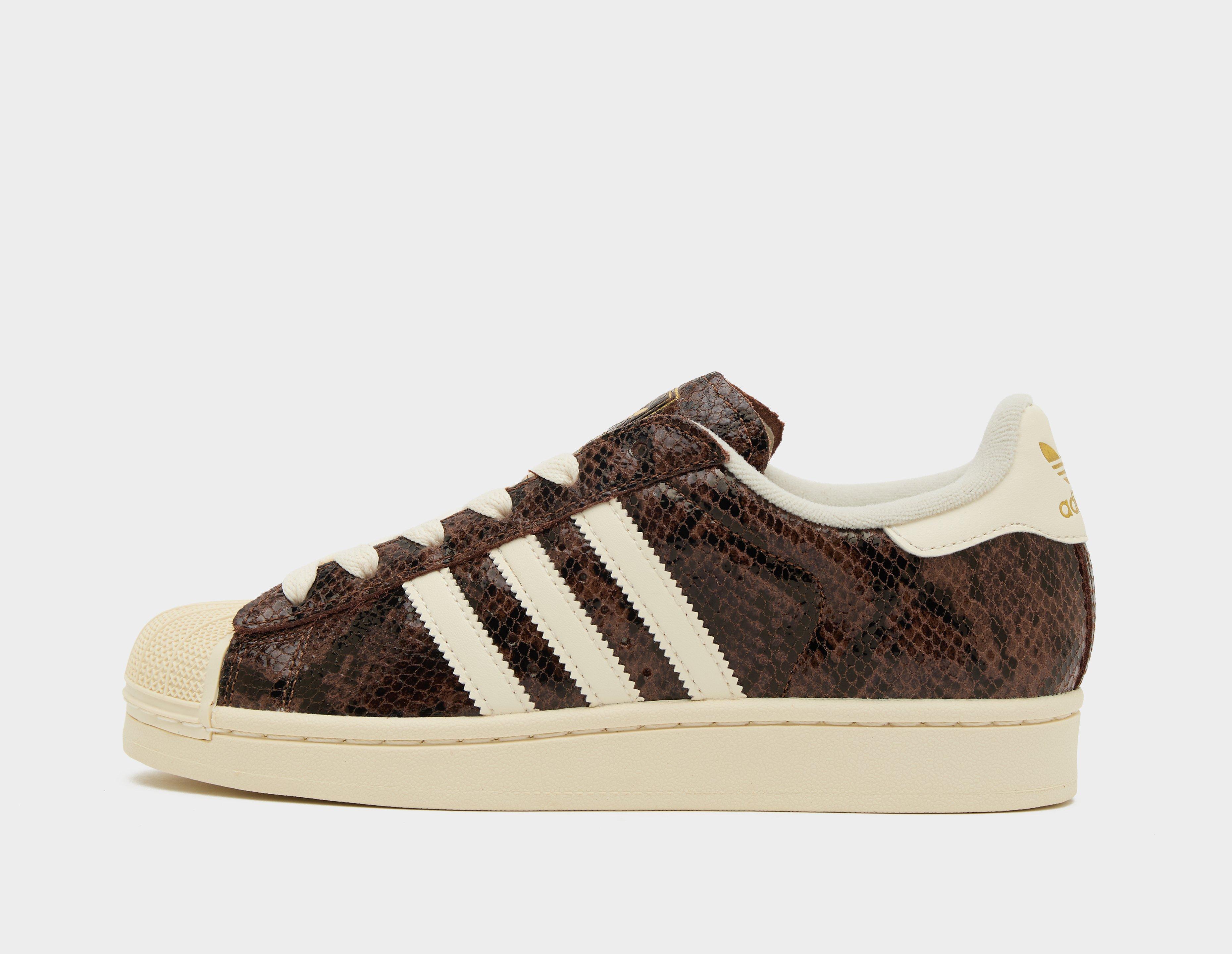 adidas takes us into the new season with a luxe overhaul of its coveted Superstar II. Wrapped in snake print 'Preloved Brown' leather, the upper is given a contemporary uplift with cream highlights on the 3-Stripes and heel tab. The rest of the silhouette follows suit, from the gold-stamped leather tongue to the shell toe and rubber sole unit. | JP8158_