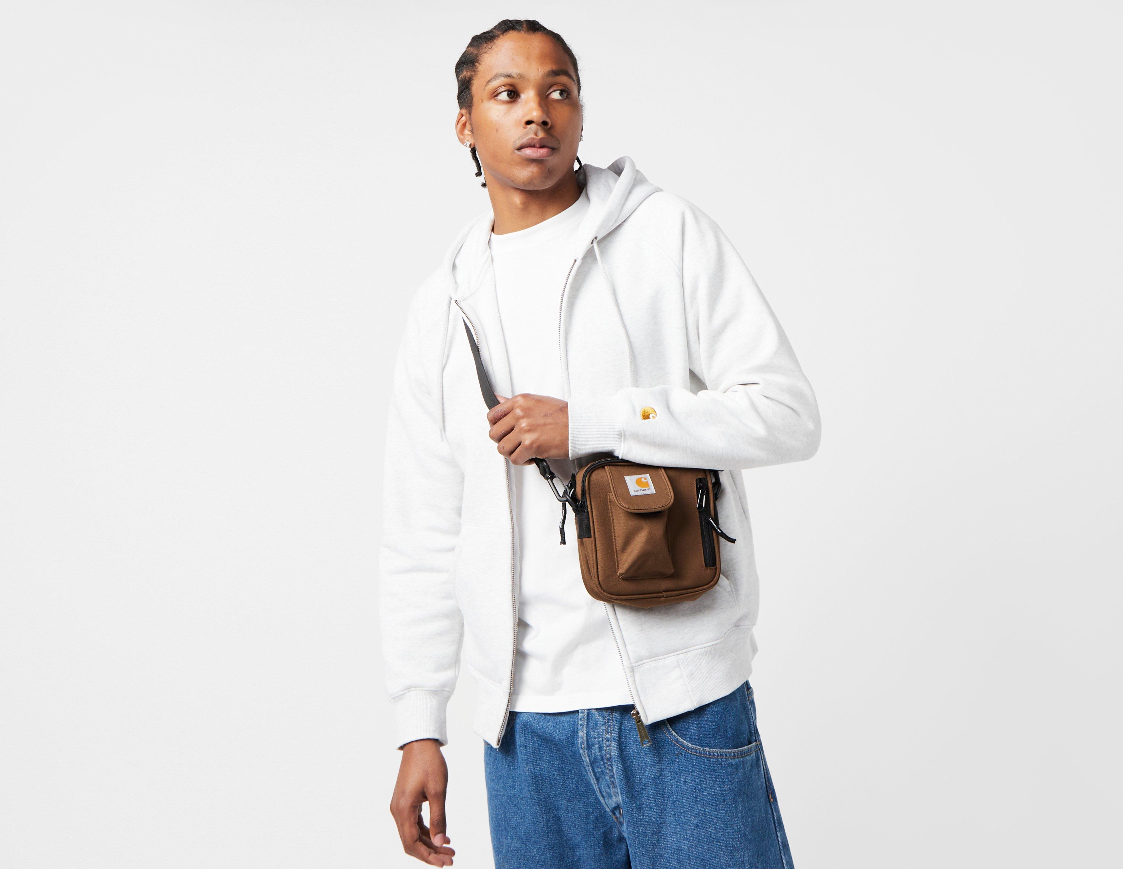 The Carhartt WIP Essentials Side Bag is made from recycled polyester-blend canvas, and features an outer Velcro pouch and removeable shoulder strap. Squared labelling on the front of the bag nods to brand heritage. | 6.7 x 6.5 x 2.4 inch