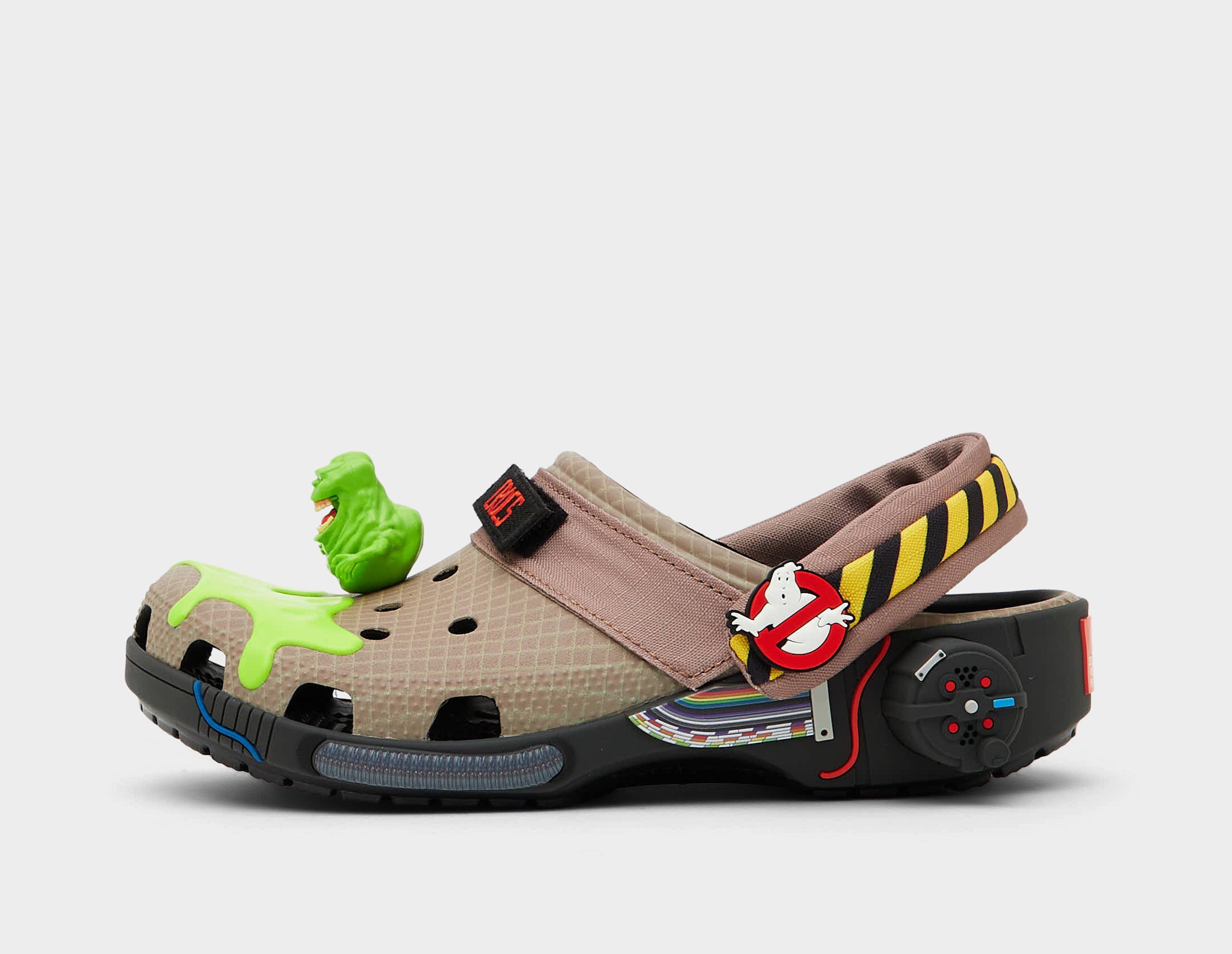 We know who to call for this latest collaboration from Crocs and Ghostbusters: the Classic Clog gets reimagined with battling the paranormal in mind. Taking inspiration from the OG films, the upper resembles an iconic flight suit with added glow-in-the-dark ectoplasm that seeps across the toes. Interchangeable nametags let you choose between the 4 Ghostbusters, and Jibbitz-wise, a Ghost Trap charm on the right is readied to capture Slimer, who haunts the left shoe. An impressive final touch comes from the right sole unit - a Proton Pack with a touch-activated power-up sound effect. Perfection. | 211414-90H