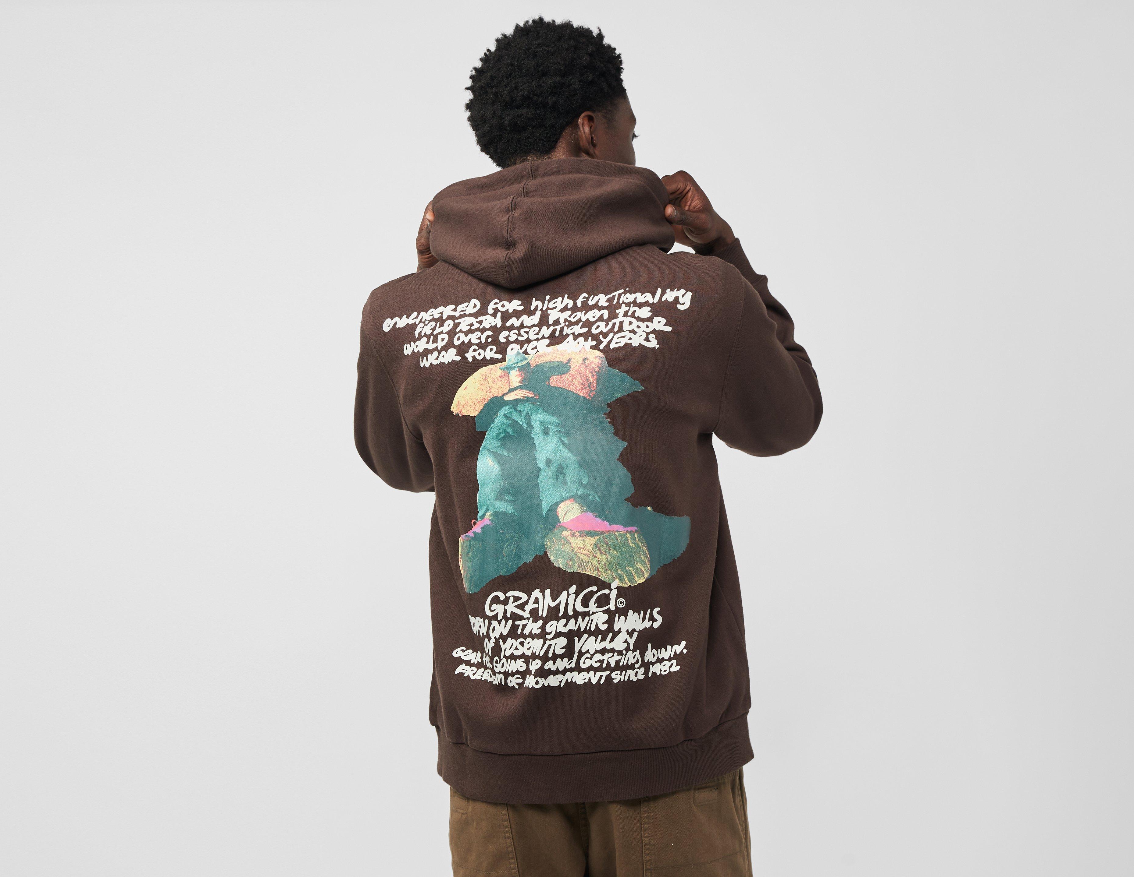 Gramicci's Napping Climber Hoodie is constructed from fleecy French terry cotton that's been cut to a relaxed fit and is an ideal layer for the changing of the seasons. Graphic prints adorn the front and reverse. | our model is 6'2'' and wears a size medium