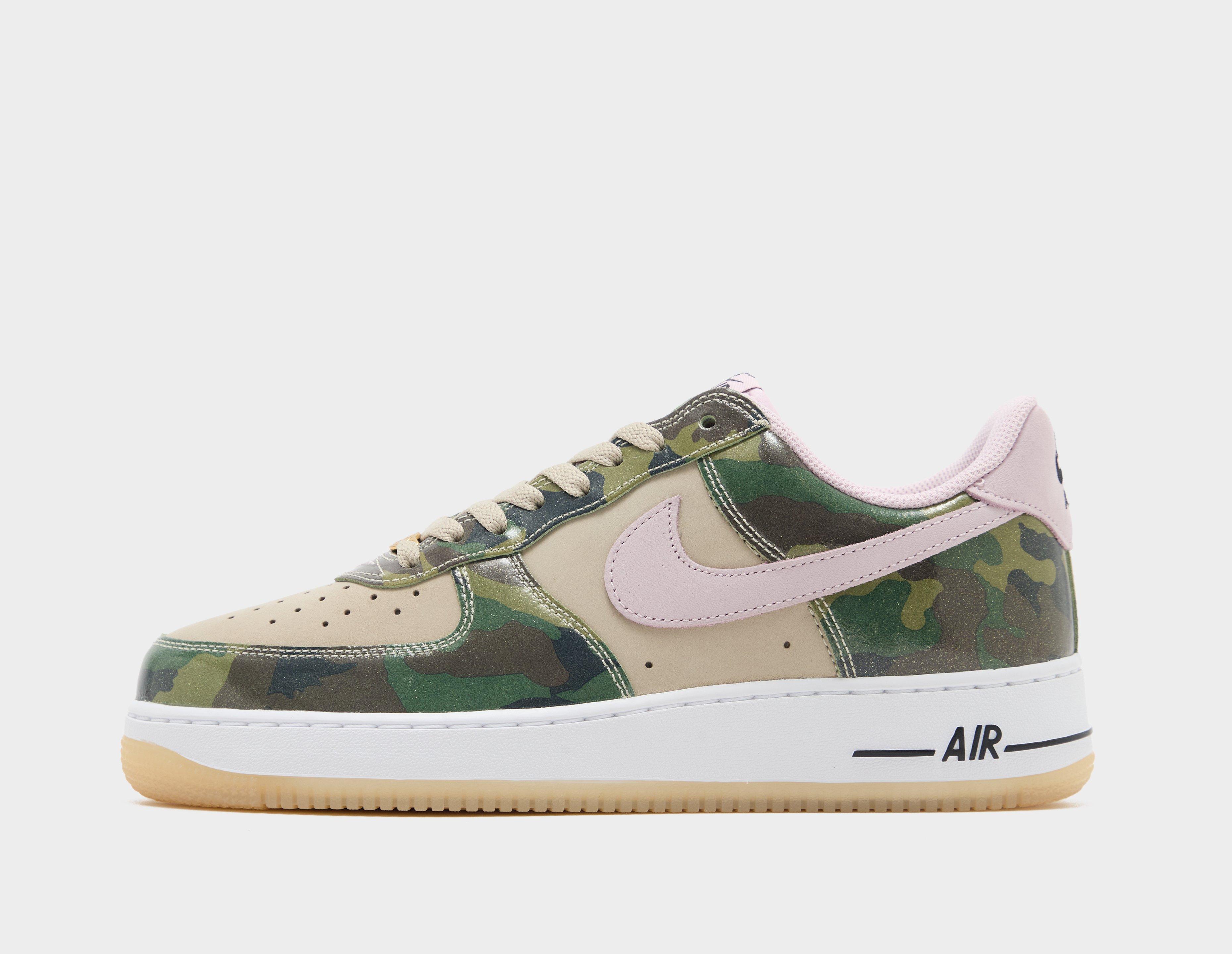 Bruce Kilgore's Air Force gets a camo makeover with a 2000s-inspired colour palette. Buttery tan suede provides the base for the upper, while patent 'Camo' layers glisten above and touches of pink from the lining, AF1 tongue tag and the all-important sidewall Swoosh deviate from the earthy colour tones for a unique finish. Below, the chunky Air midsole appears in white and is underlined by a gum rubber outsole. | HQ1967-200