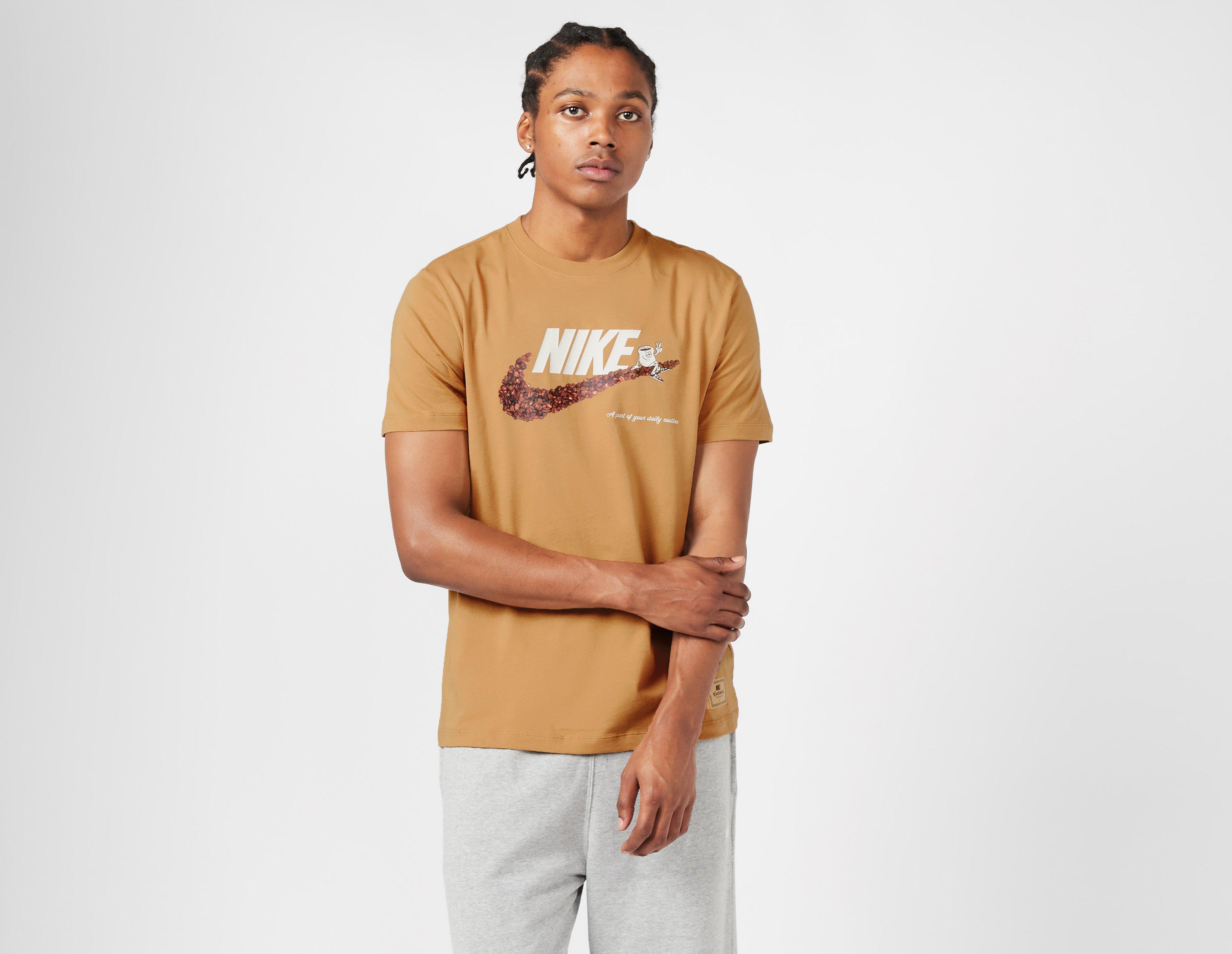 Nike switches up the Swoosh with a playful take on the iconic logo here with the Sole Cafe Beans T-Shirt. In a standard fit, this tee features coffee-inspired graphics throughout and is spun from soft cotton for everyday comfort. | our model is 6'2" and wears a size medium