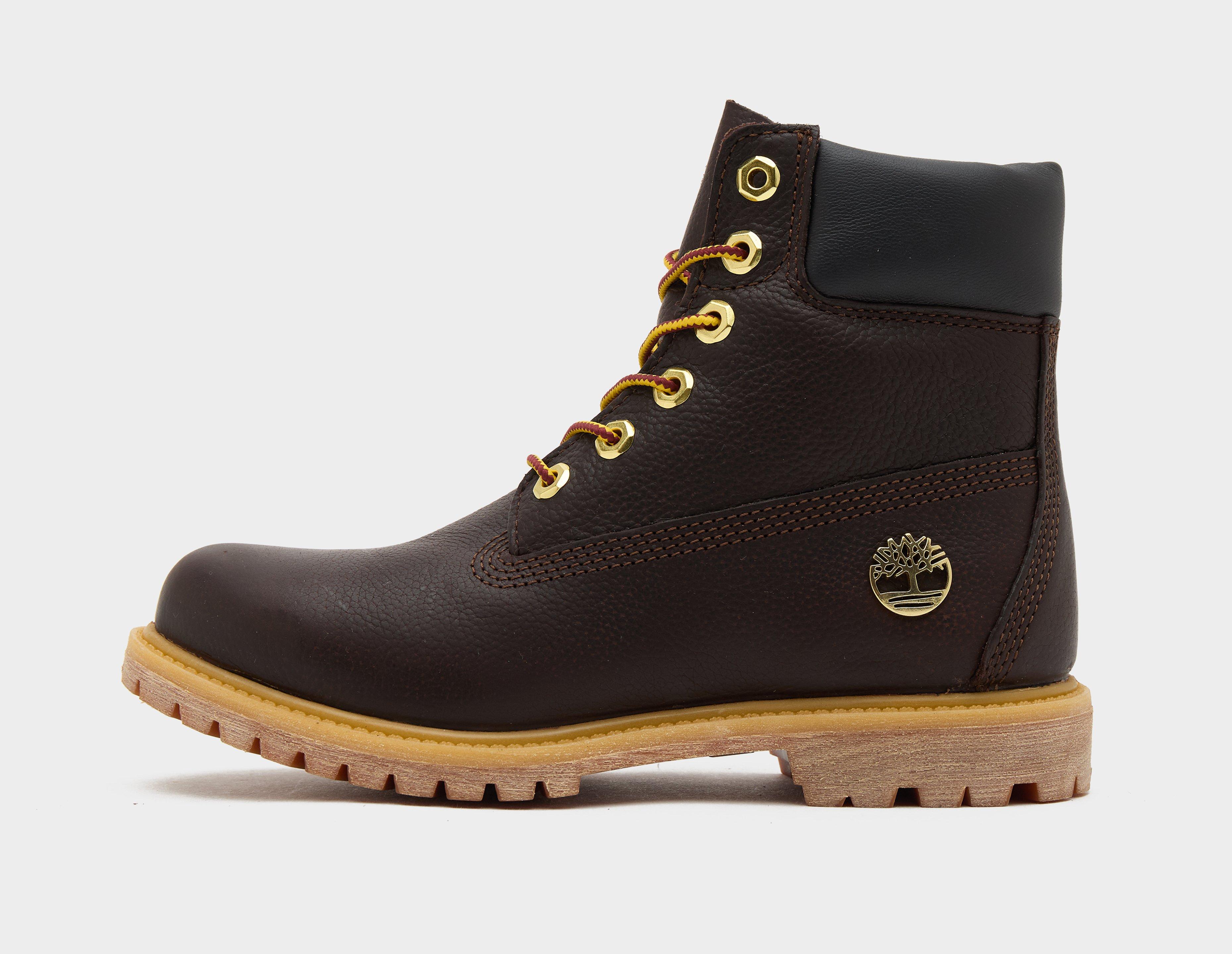 A distinct style with anti-elemental qualities, Timberland's Premium 6'' Premium Boot is crafted from seasonally apt 'Dark Brown' full grain leather uppers. The padded collar is fitted with Primaloft insulation, while an anti-fatigue footbed softens the lugged rubber outsole. Fob and rear ankle logo detail and the final embellishments. | TB0A2HR8EXU1